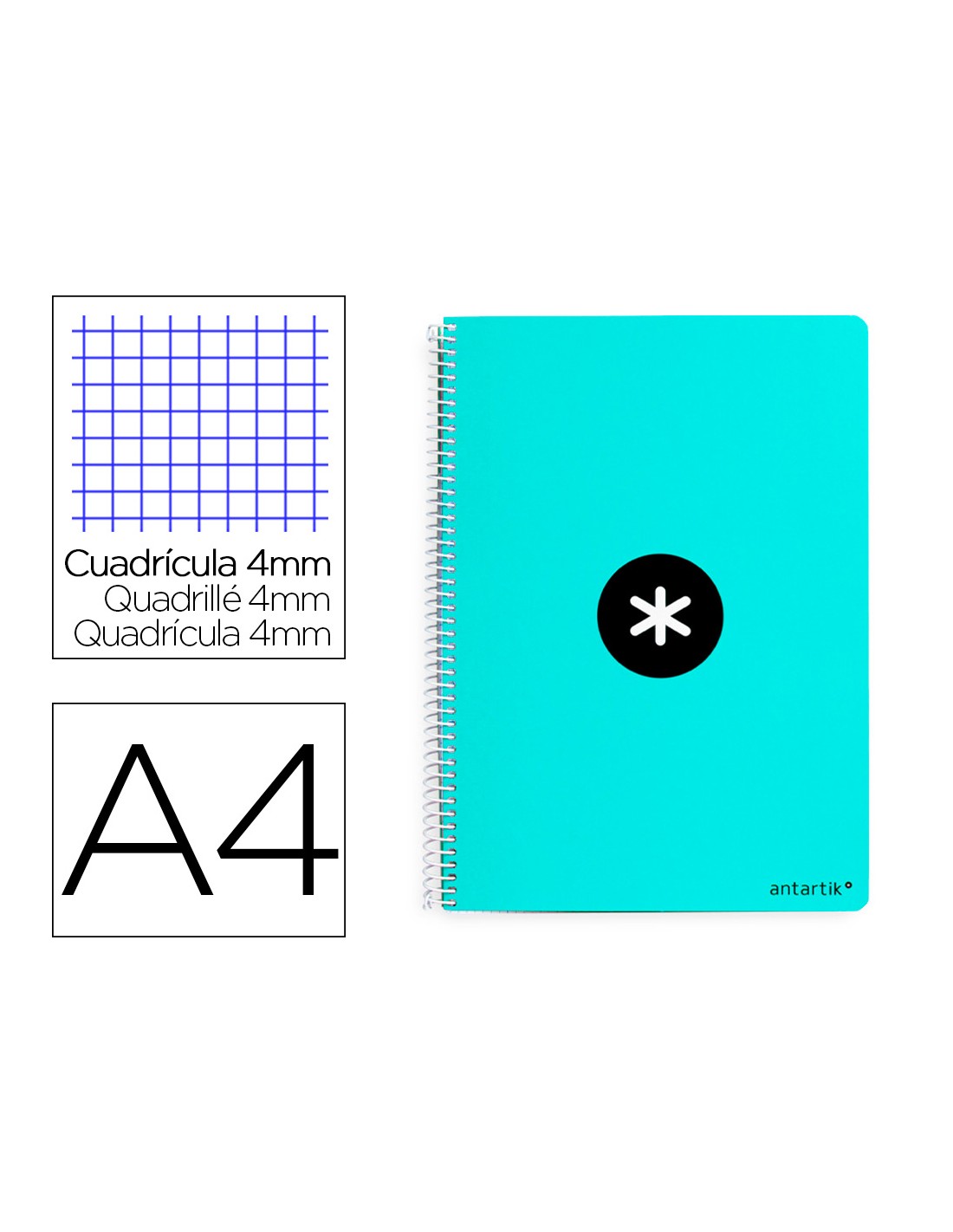 Cuaderno espiral a4 antartik tapa dura 80h 90gr cuadro 4mm con margen color menta