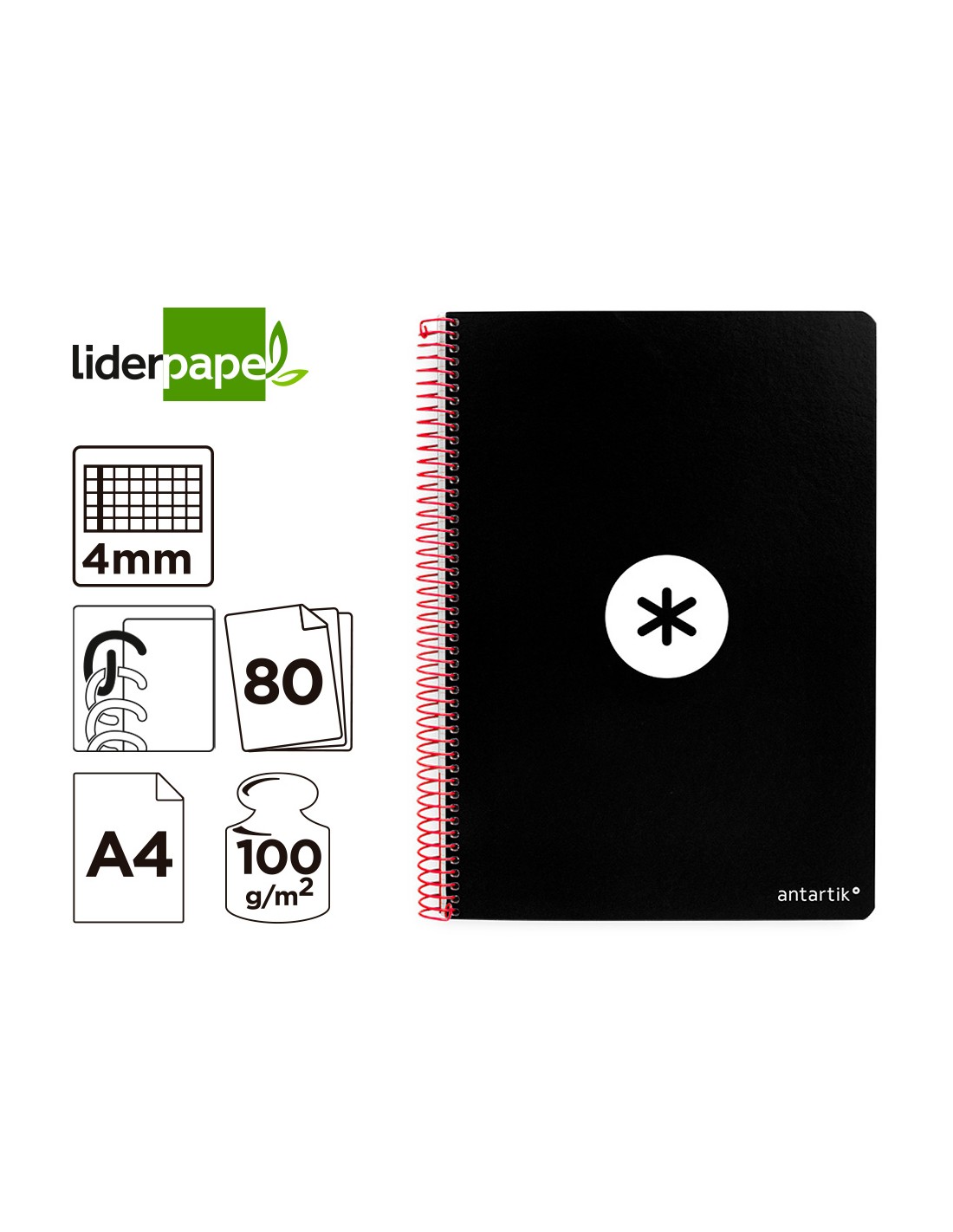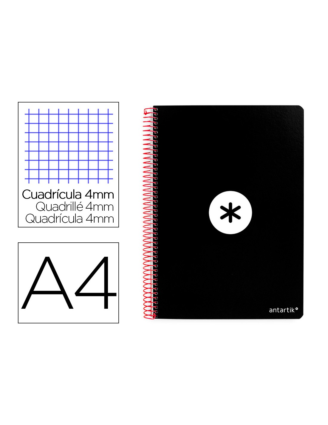 Cuaderno espiral a4 antartik tapa dura 80h 90gr cuadro 4mm con margen color negro