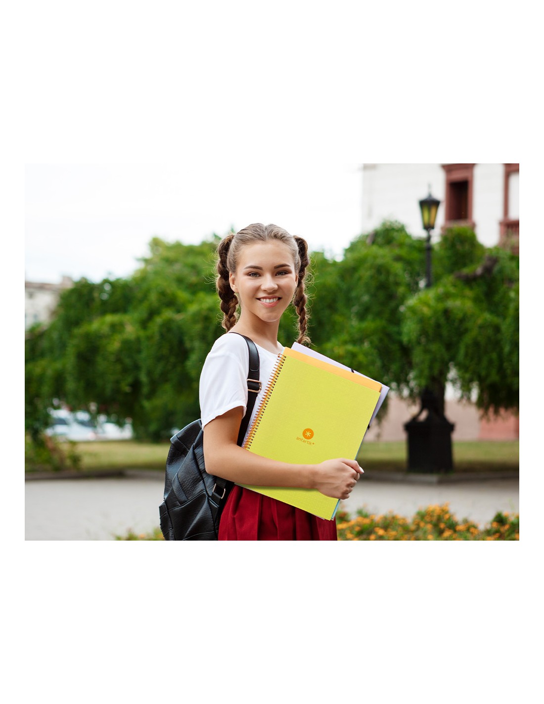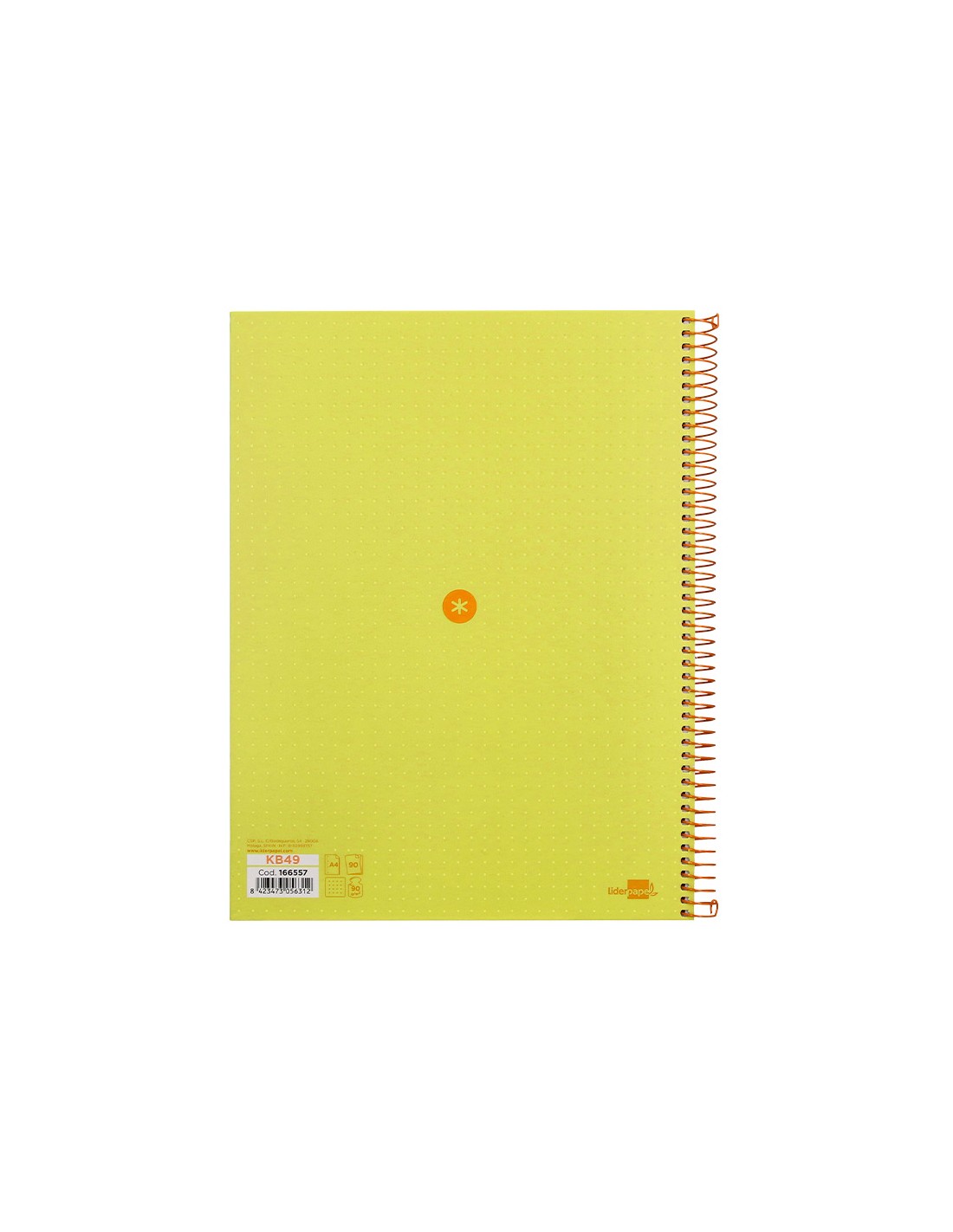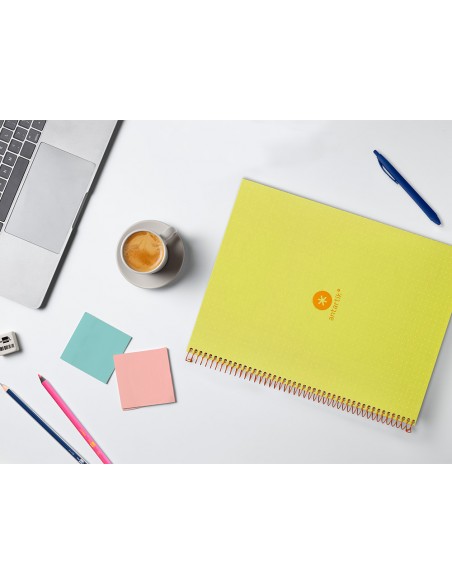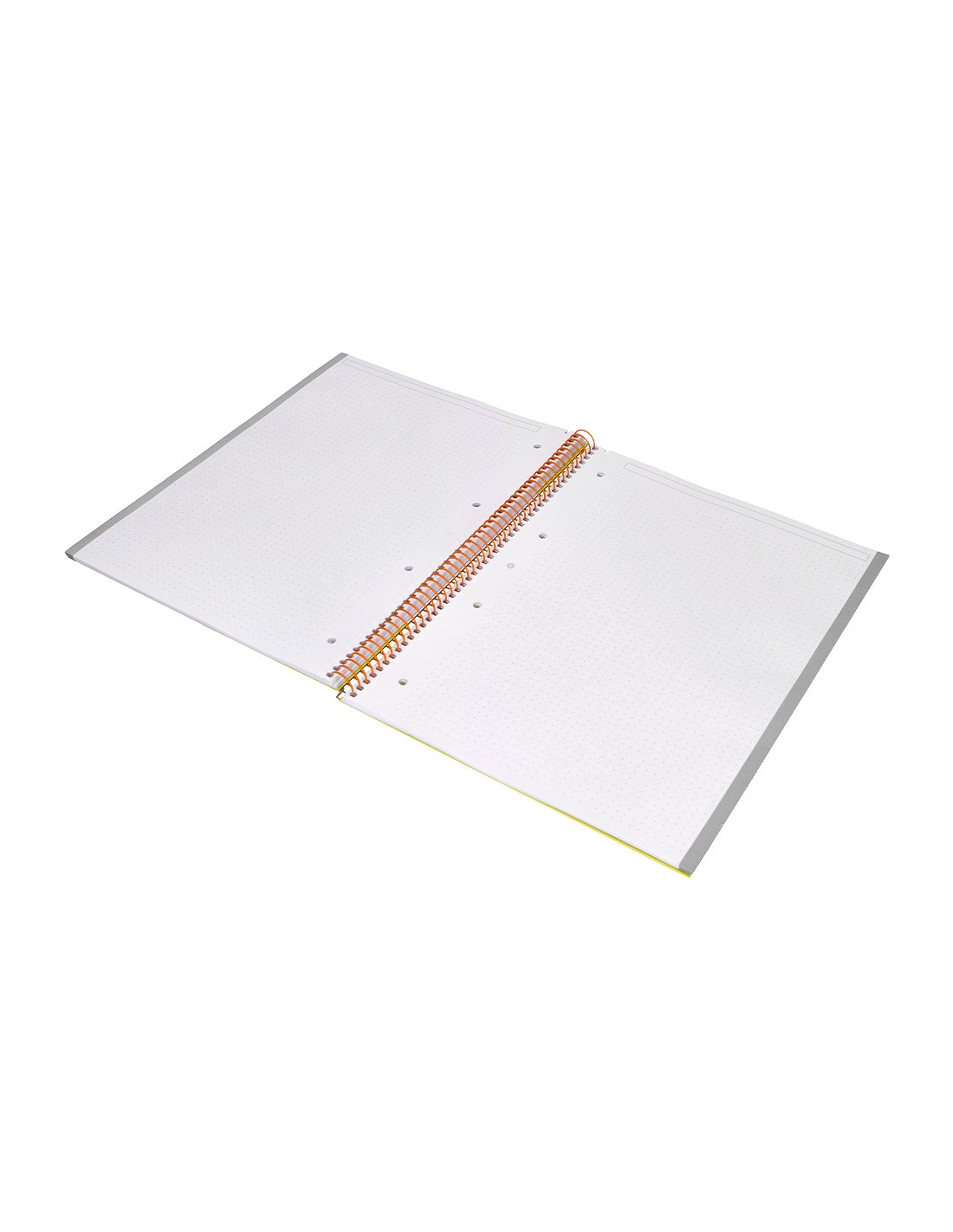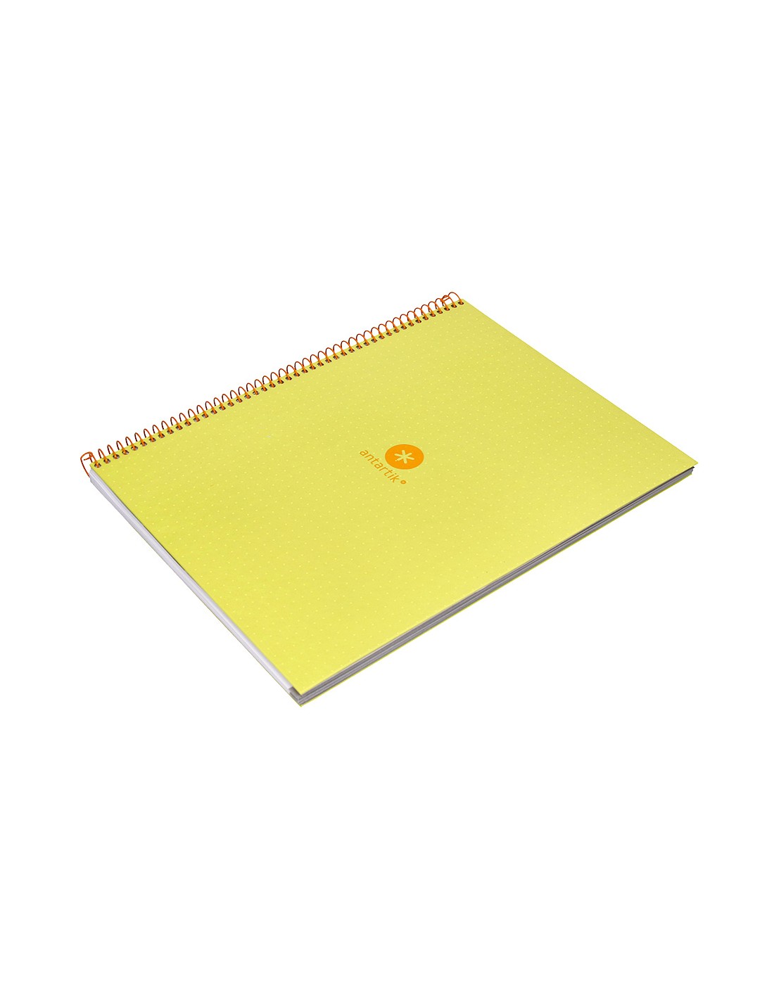 El cuaderno de más alta gama del mercado exclusivo diseño, características inigualables, un cuaderno sin precedentes que se distingue por la suavidad y blancura de su papel. Tapa de cartón entrecolado de 1,5 mm de espesor, forrado a una cara con papel estucado mate extrasuave y reserva de barniz uvi. Guarda interior impresa. 80 hojas de gran resistencia y rigidez. Papel extrablanco de 90 g/m2, ultrasuave que hace la escritura mucho más fluida. La tinta no traspasa. Banda de color. Formato Din A4. Microperforado.Espiral nylonizada de colores. Coil-lock. Color Amarillo. INTERIOR IMPRESO EN SUAVES PUNTOS GRISES EQUIDISTANTES 5MM ENTRE SI QUE PERMITEN SER UNA PERFECTA GUIA SIN DESTACAR. IDEAL PARA HACER BOCETOS, DIBUJAR, TOMAR APUNTES O HACER GRAFICOS.