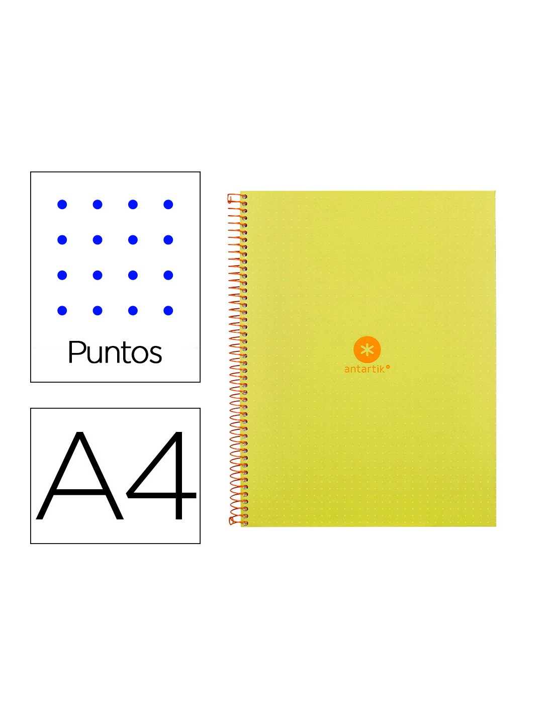 Cuaderno espiral a4 micro antartik dots tapa forrada 80h 90 gr rayado puntos 1 banda 4 taladros amarillo