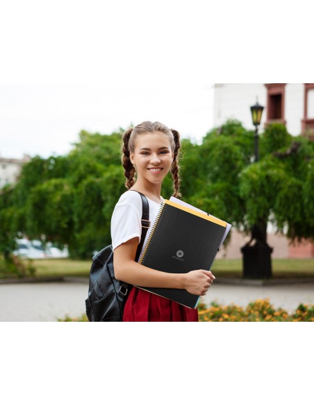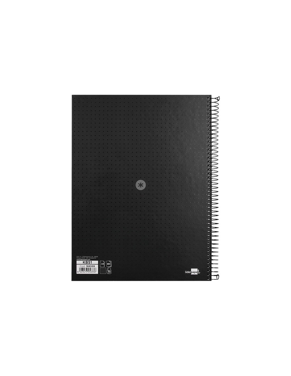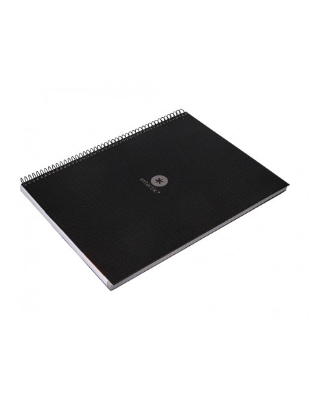 EL CUADERNO DE MÁS ALTA GAMA DEL MERCADO EXCLUSIVO DISEÑO, CARACTERÍSTICAS INIGUALABLES, UN CUADERNO SIN PRECEDENTES QUE SE DISTINGUE POR LA SUAVIDAD Y BLANCURA DE SU PAPEL. TAPA DE CARTÓN ENTRECOLADO DE 1,5 MM DE ESPESOR, FORRADO A UNA CARA CON PAPEL ESTUCADO MATE EXTRASUAVE Y RESERVA DE BARNIZ UVI. GUARDA INTERIOR IMPRESA. 80 HOJAS DE GRAN RESISTENCIA Y RIGIDEZ. PAPEL EXTRABLANCO DE 90 G/M2, ULTRASUAVE QUE HACE LA ESCRITURA MUCHO MÁS FLUIDA. LA TINTA NO TRASPASA. BANDA DE COLOR. FORMATO DIN A4. MICROPERFORADO.ESPIRAL NYLONIZADA DE COLORES. COIL-LOCK. COLOR NEGRO. INTERIOR IMPRESO EN SUAVES PUNTOS GRISES EQUIDISTANTES 5MM ENTRE SI QUE PERMITEN SER UNA PERFECTA GUIA SIN DESTACAR. IDEAL PARA HACER BOCETOS, DIBUJAR, TOMAR APUNTES O HACER GRAFICOS.