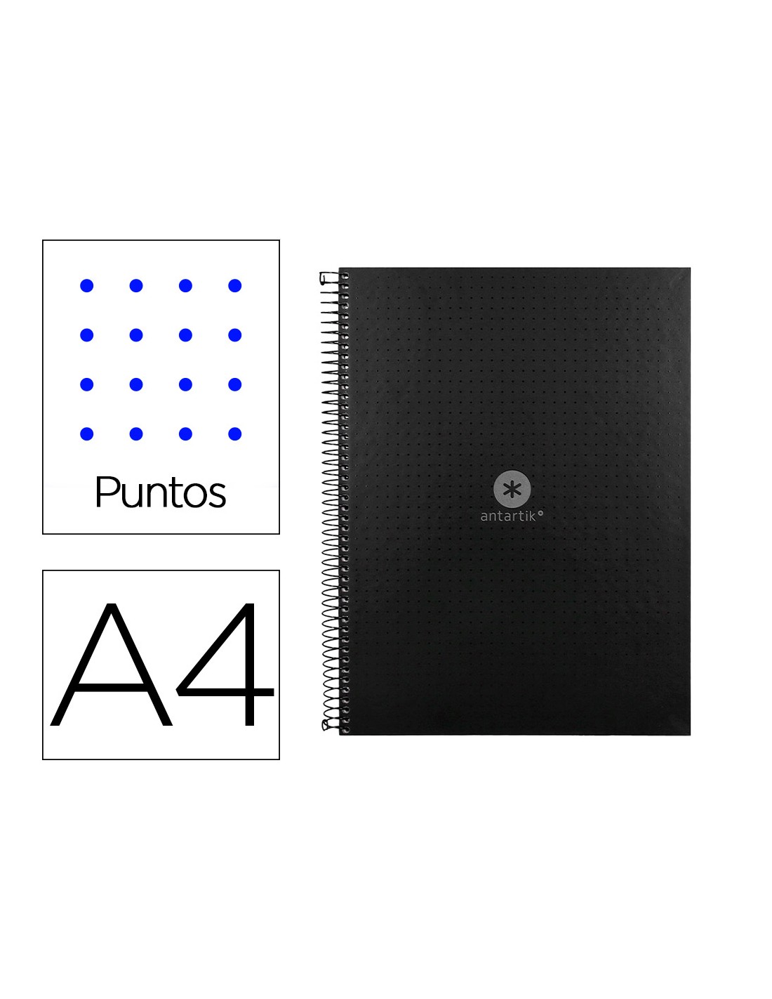 Cuaderno espiral a4 micro antartik dots tapa forrada 80h 90 gr rayado puntos 1 banda 4 taladros negro