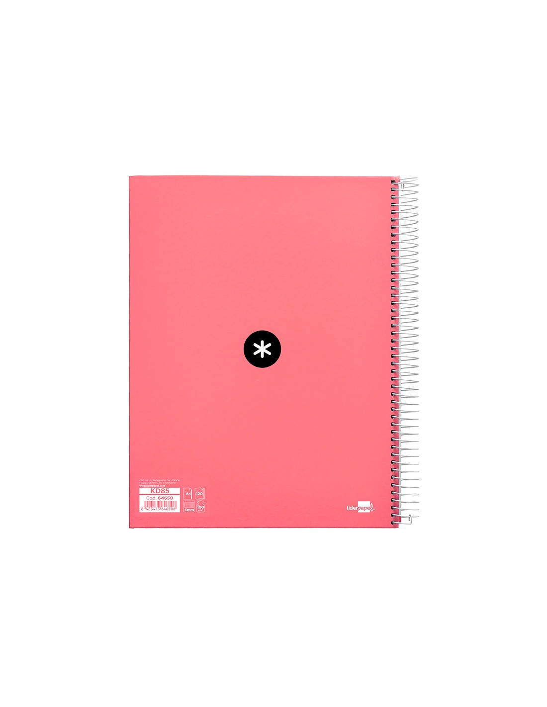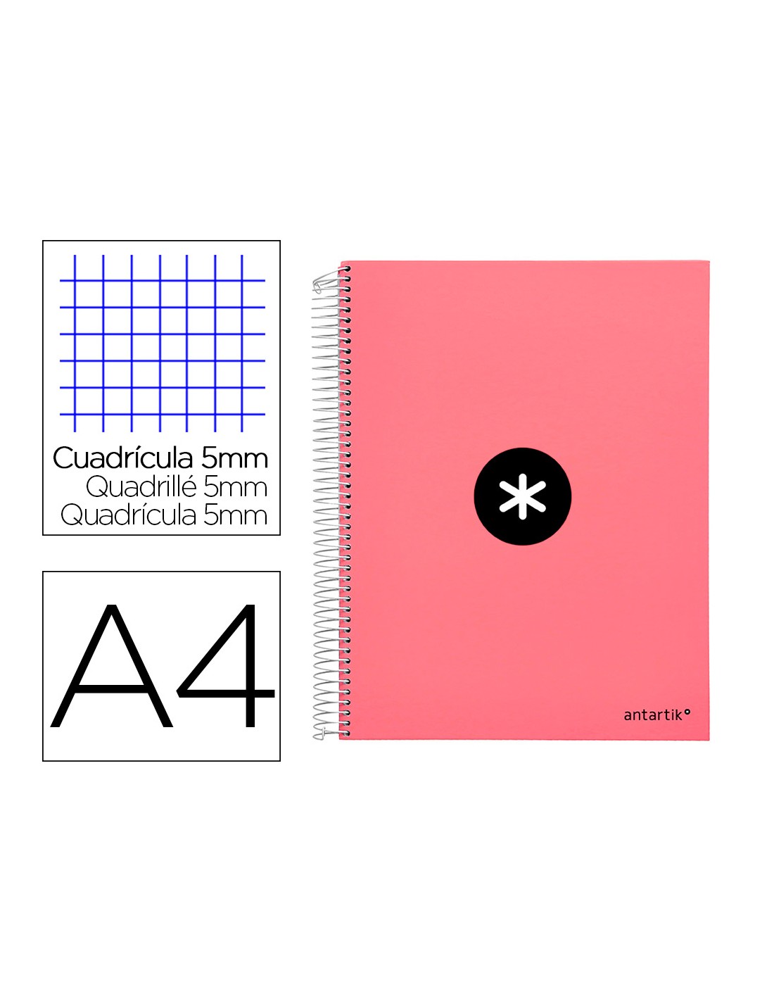 Cuaderno espiral a4 micro antartik tapa forrada 120h 90 gr cuadro 5mm 5 bandas 4 taladros color coral