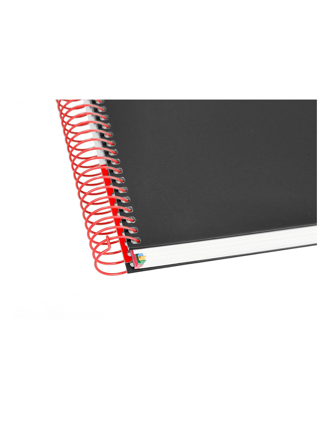 El cuaderno de más alta gama del mercado exclusivo diseño, características inigualables, un cuaderno sin precedentes que se distingue por la suavidad y blancura de su papel, y además hace la escritura muy fluida. Tapa de cartón entrecolado de 1,5 mm de espesor, forrado a una cara con papel estucado mate extrasuave y reserva de barniz UVI. Guarda interior impresa. 100 y 120 hojas. Gran resistencia y rigidez. Papel extrablanco de 90 g/m², u ltrasuave que hace la escritura mucho más fluida. La tinta no traspasa. 4 bandas de colores (formato A6) y 5 bandas de colores (formatos A5 y A4). Espiral nylonizada de colores. Coil-lock.