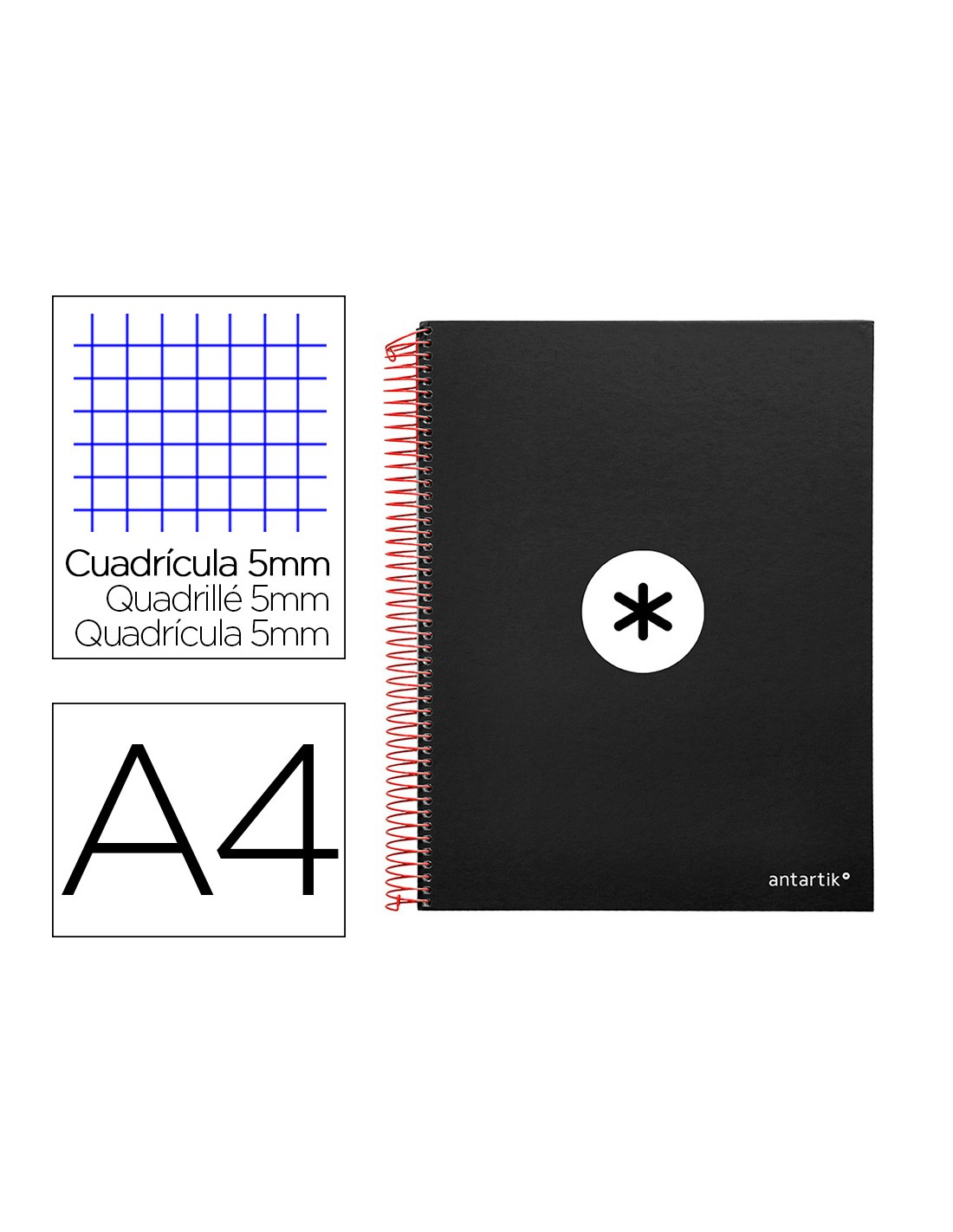 Cuaderno espiral a4 micro antartik tapa forrada 120h 90 gr cuadro 5mm 5 bandas 4 taladros color negro