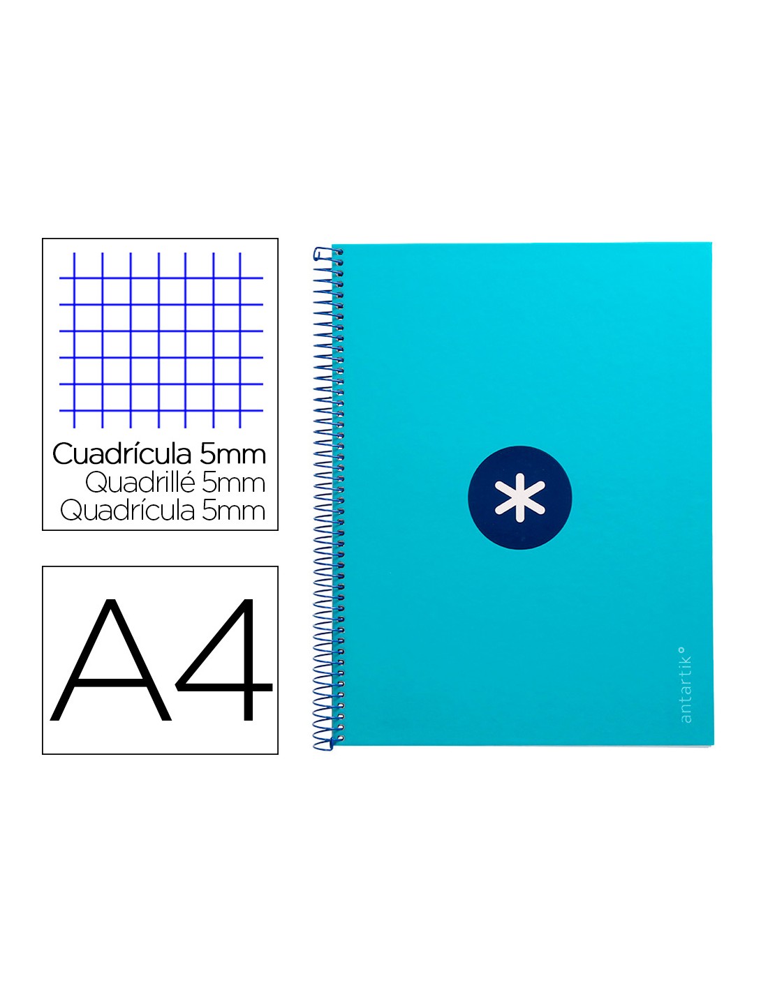 Cuaderno espiral a4 micro antartik tapa forrada 80h 90 gr cuadro 5mm 1 banda 4 taladros turquesa