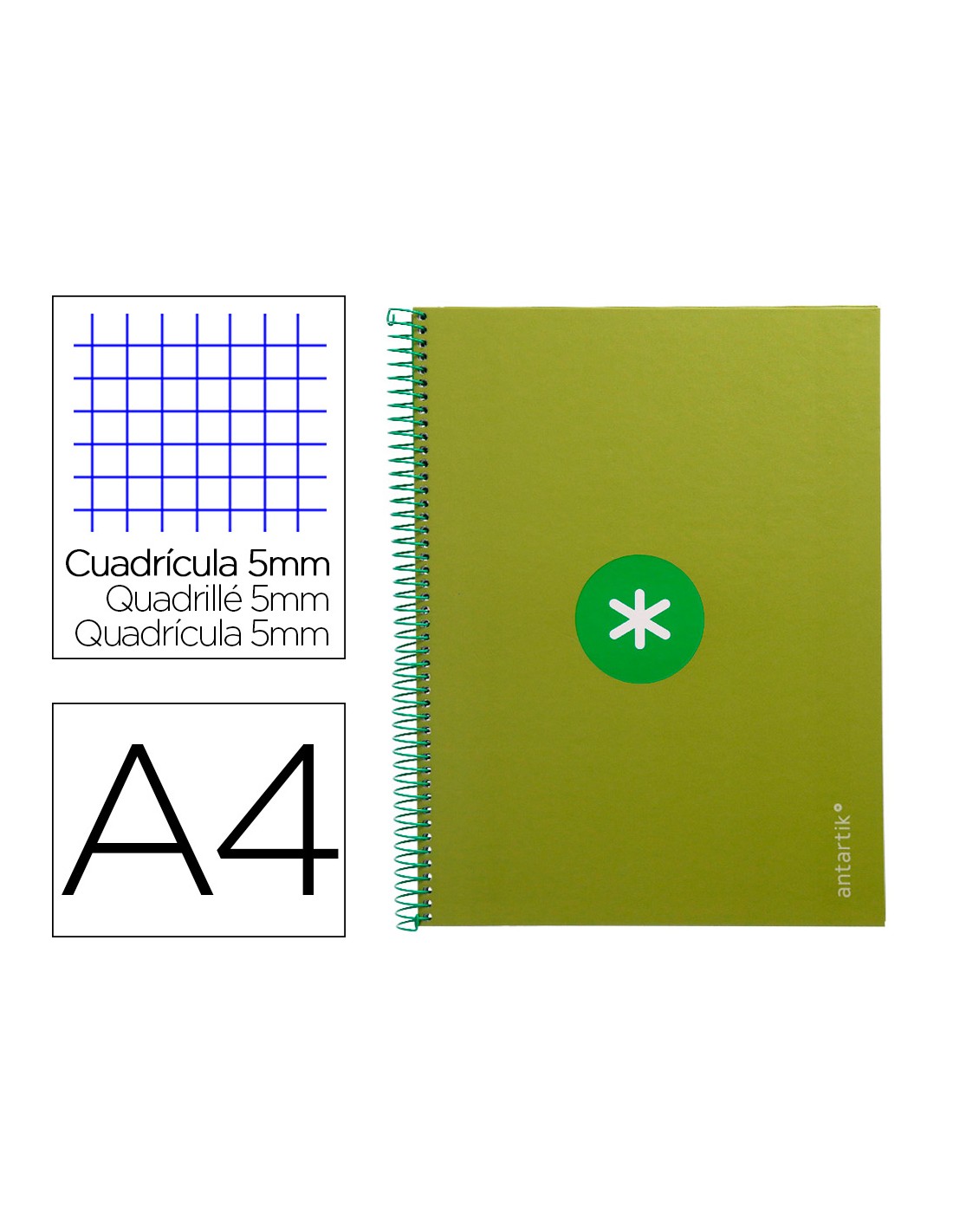 Cuaderno espiral a4 micro antartik tapa forrada 80h 90 gr cuadro 5mm 1 banda 4 taladros verde