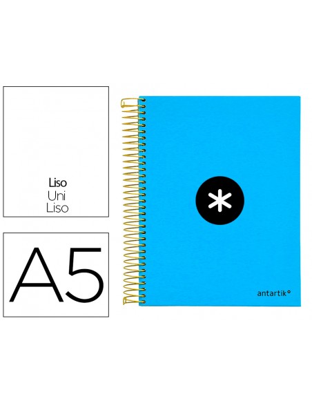 Cuaderno espiral a5 micro antartik tapa forrada 120h 90g liso con bandas 6 taladros color azul