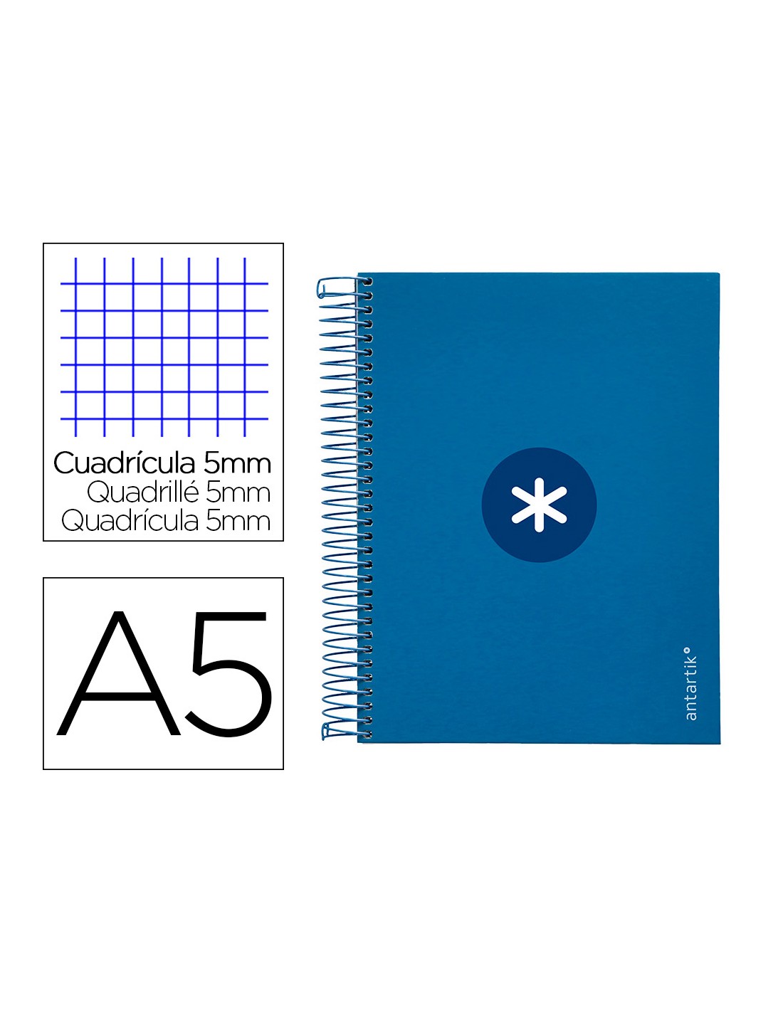 Cuaderno espiral a5 micro antartik tapa forrada120h 90 gr cuadro 5mm 5 bandas6 taladros color azul oscuro