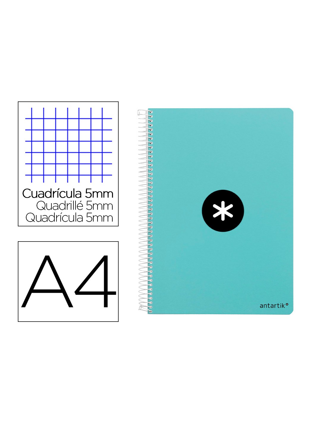 Cuaderno espiral antartik a4 micro tapa dura 80h 100 gr cuadro 5mm sin bandas 4 taladros color menta