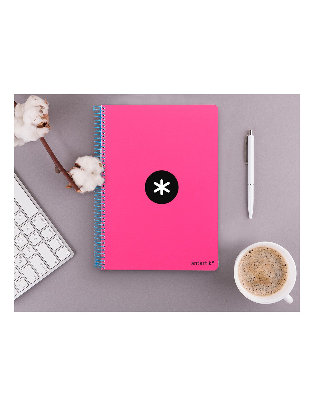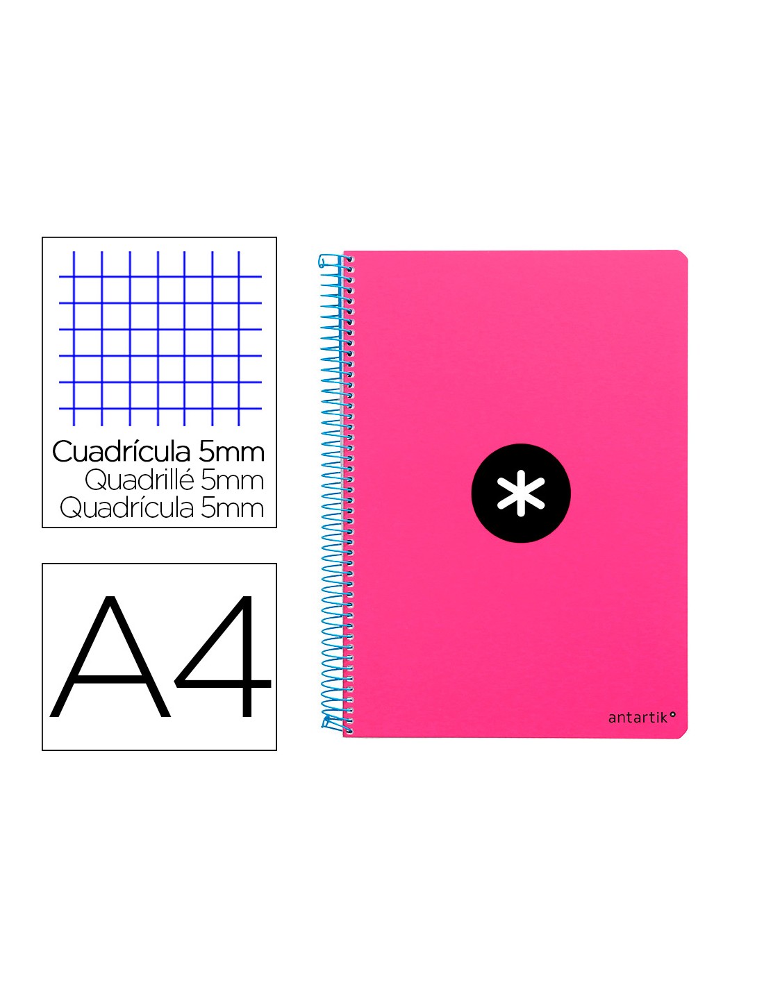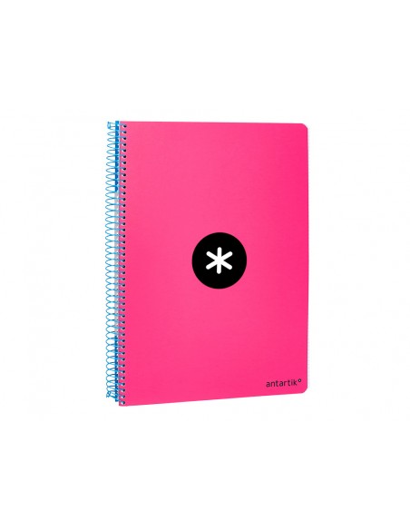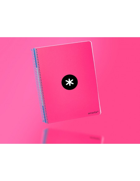 Cuaderno espiral antartik a4 micro tapa dura 80h 100 gr cuadro 5mm sin bandas 4 taladros color rosa fluor