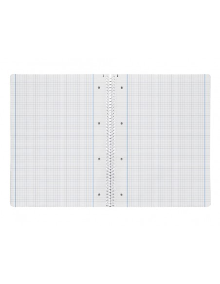 TAPA DE CARTONCILLO 400 G/M2 IMPRESA Y PLASTIFICADA EN POLIPROPILENO BRILLO. CONTRATAPA DE CARTONCILLO 450G/M2 IMPRESA Y PLASTIFICADA. PAPEL DE 75 G/M2. ESPIRAL NYLONIZADA BLANCA. CON CUADRO 5MM CON DOBLE MARGEN. COIL-LOCK.