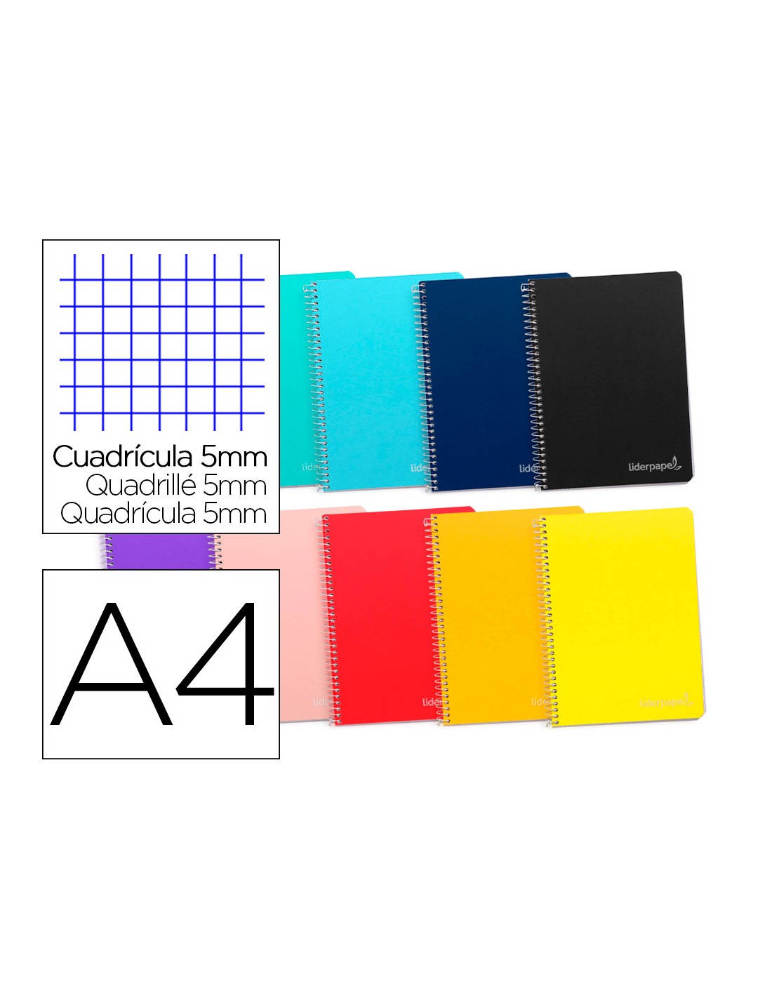Cuaderno espiral liderpapel a4 micro witty tapa dura 140h 75gr cuadro 5mm 5 bandas 4 taladros colores surtidos