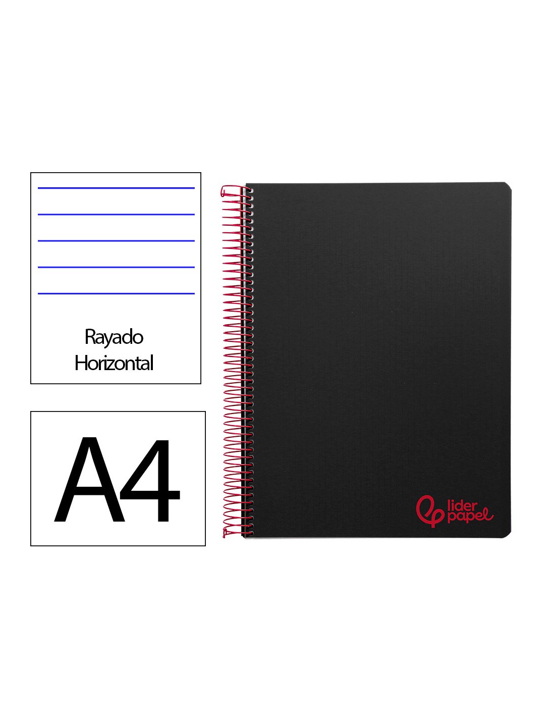 Cuaderno espiral liderpapel a4 wonder tapa plastico 80h 90gr rayado horizontal con margen color negro