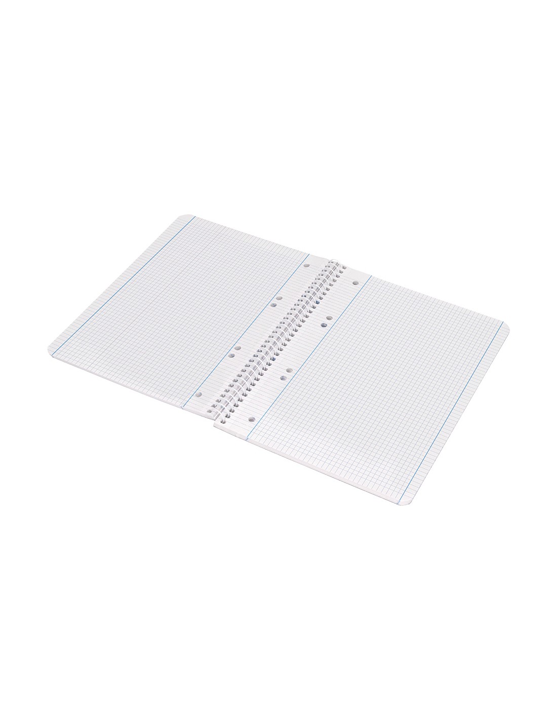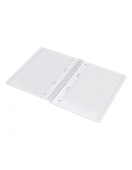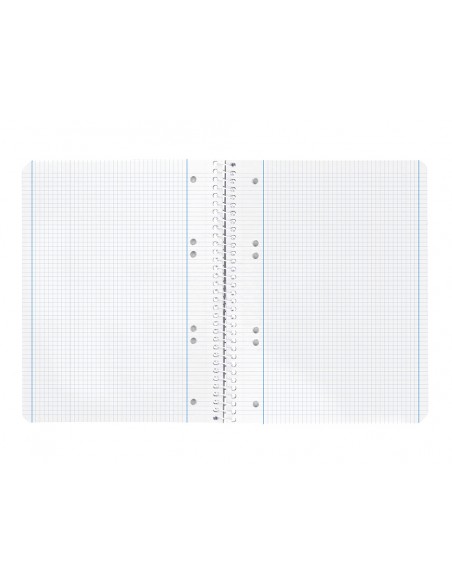 Tapa de cartón compacto de 700 g/m², barnizado a una cara en brillo. 80 hojas. Papel de 60 g/m². Espiral nylonizada negra. Con margen. Coil-lock.