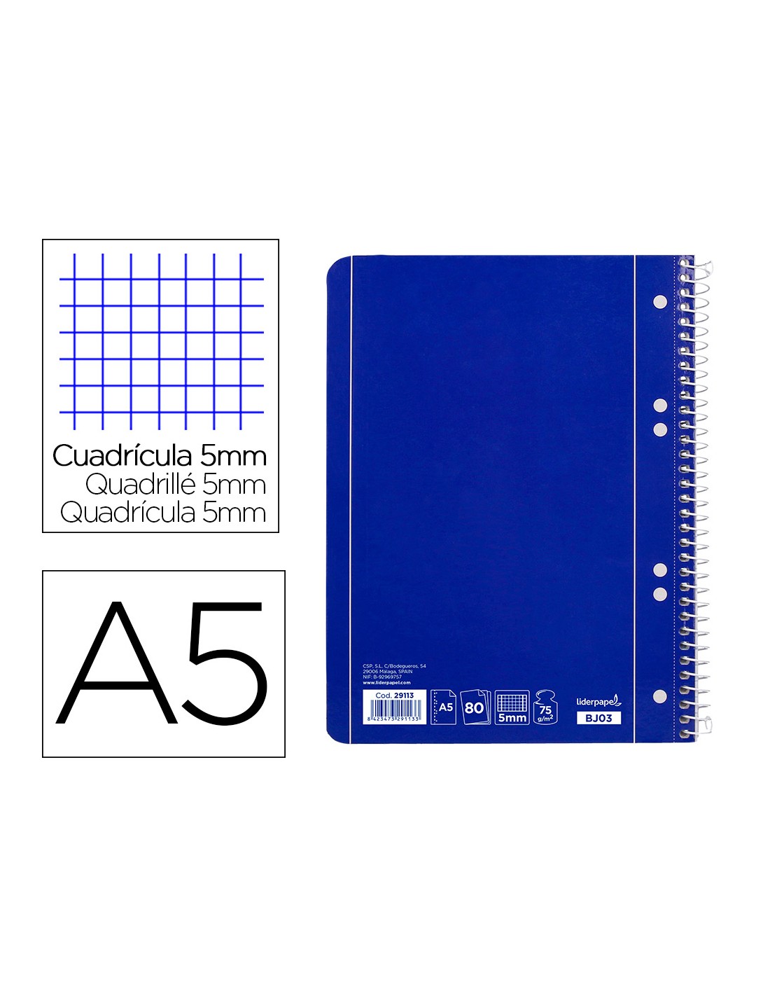 Cuaderno espiral liderpapel a5 micro serie azul tapa blanda 80h 75 gr cuadro5mm 6 taladros azul
