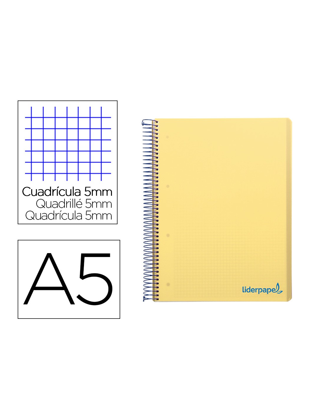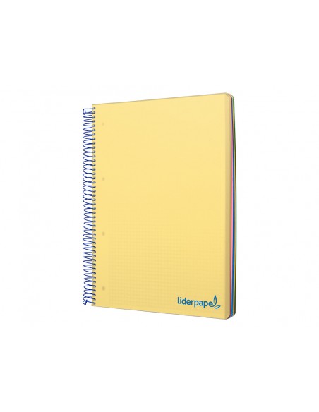 Cuaderno espiral liderpapel a5 micro wonder tapa plastico 120h 90g cuadro 5mm 5 bandas 6 taladros color amarillo