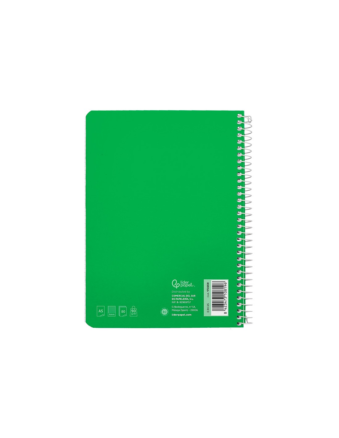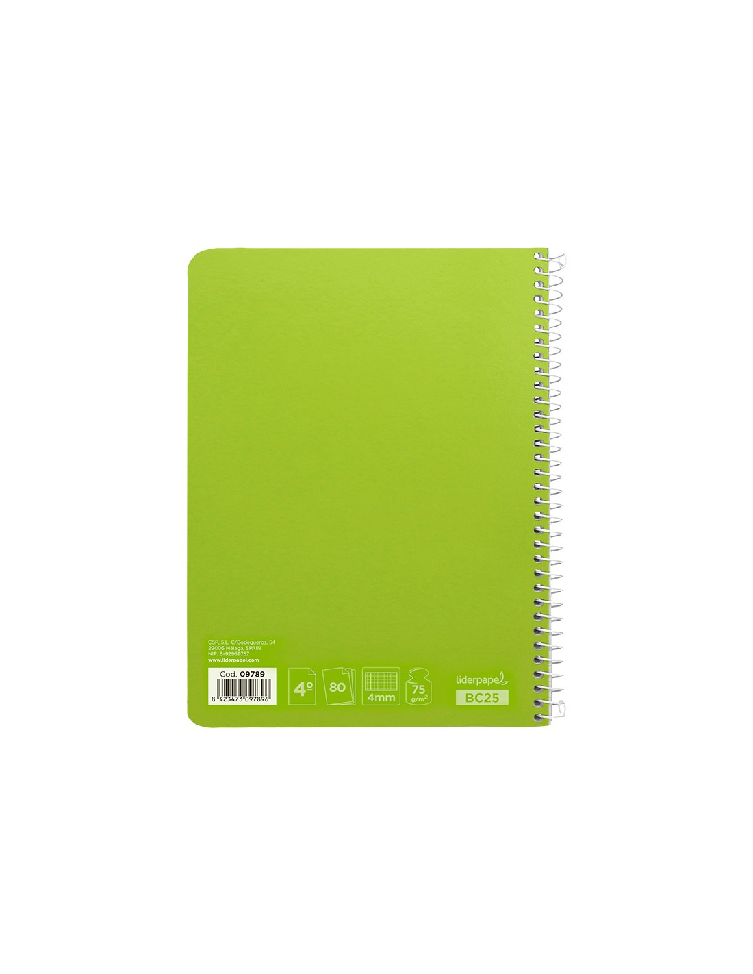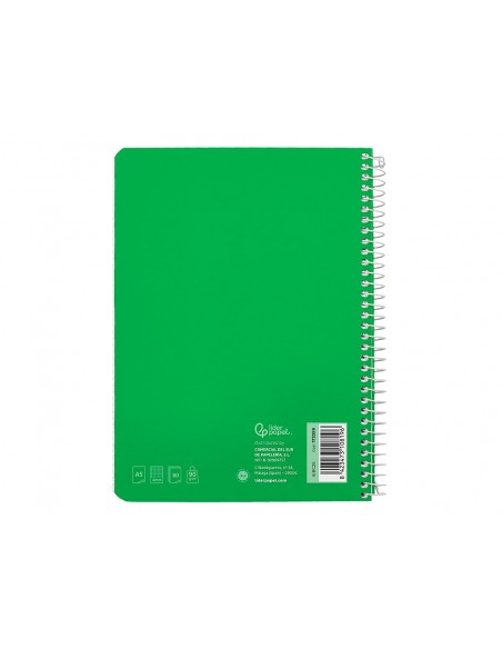 Cuaderno espiral liderpapel cuarto witty tapa dura 80h 75gr cuadro 4mm con margen color verde