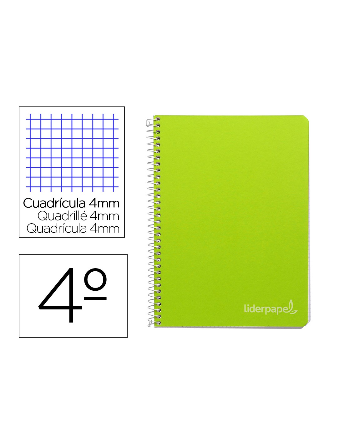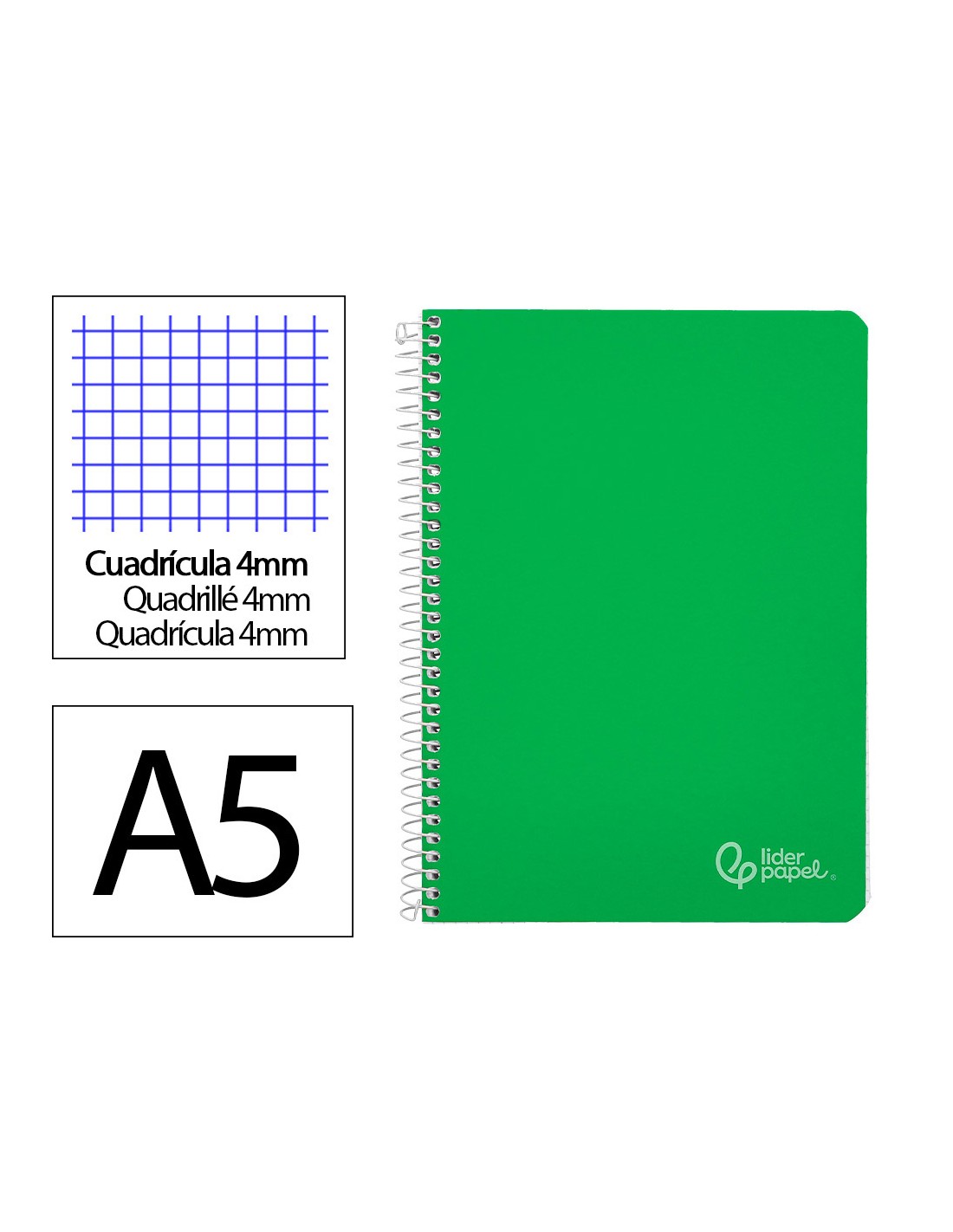 LIDERPAPELCuaderno espiral liderpapel cuarto witty tapa dura 80h 75gr cuadro 4mm con margen color verde