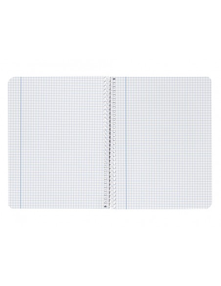 Tapa de cartón de 800 g/m² contracolado, impresa y plastificada mate. Gran resistencia y rigidez. Papel de 75 g/m². Espiral nylonizada. Coil-lock. Colores surtidos.