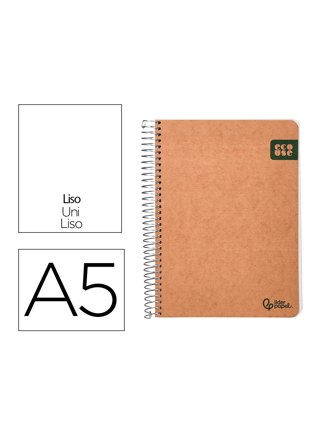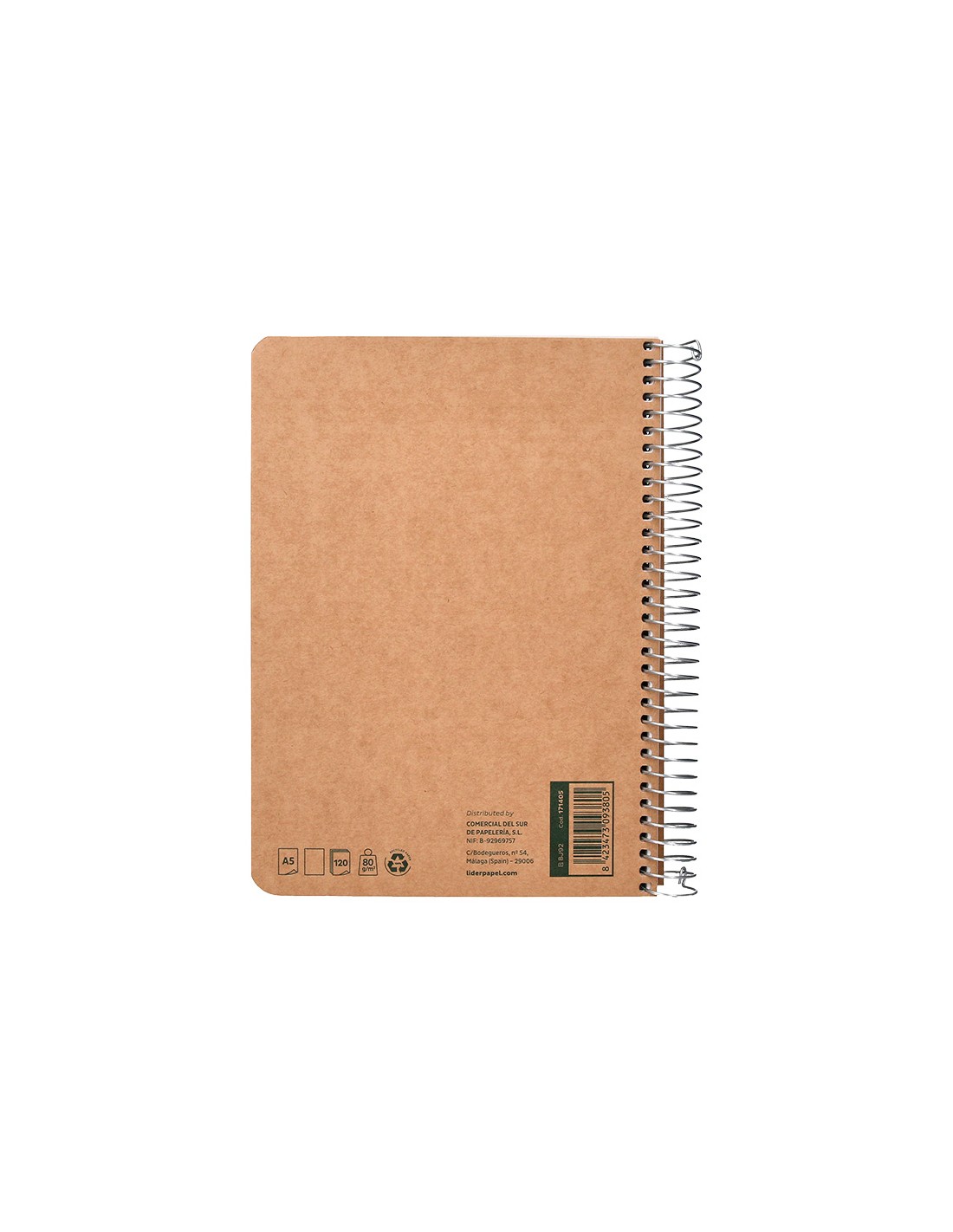 Cuaderno espiral liderpapel din a5 ecouse tapa cartulina kraft contracolada 120h papel 100% reciclado 80 gr liso