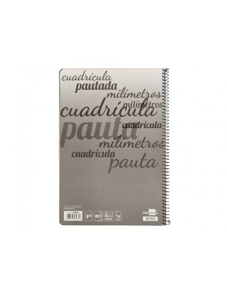 Cuaderno espiral liderpapel folio pautaguia tapa dura 80h 75 gr cuadro pautado 4mmcon margen colores surtidos