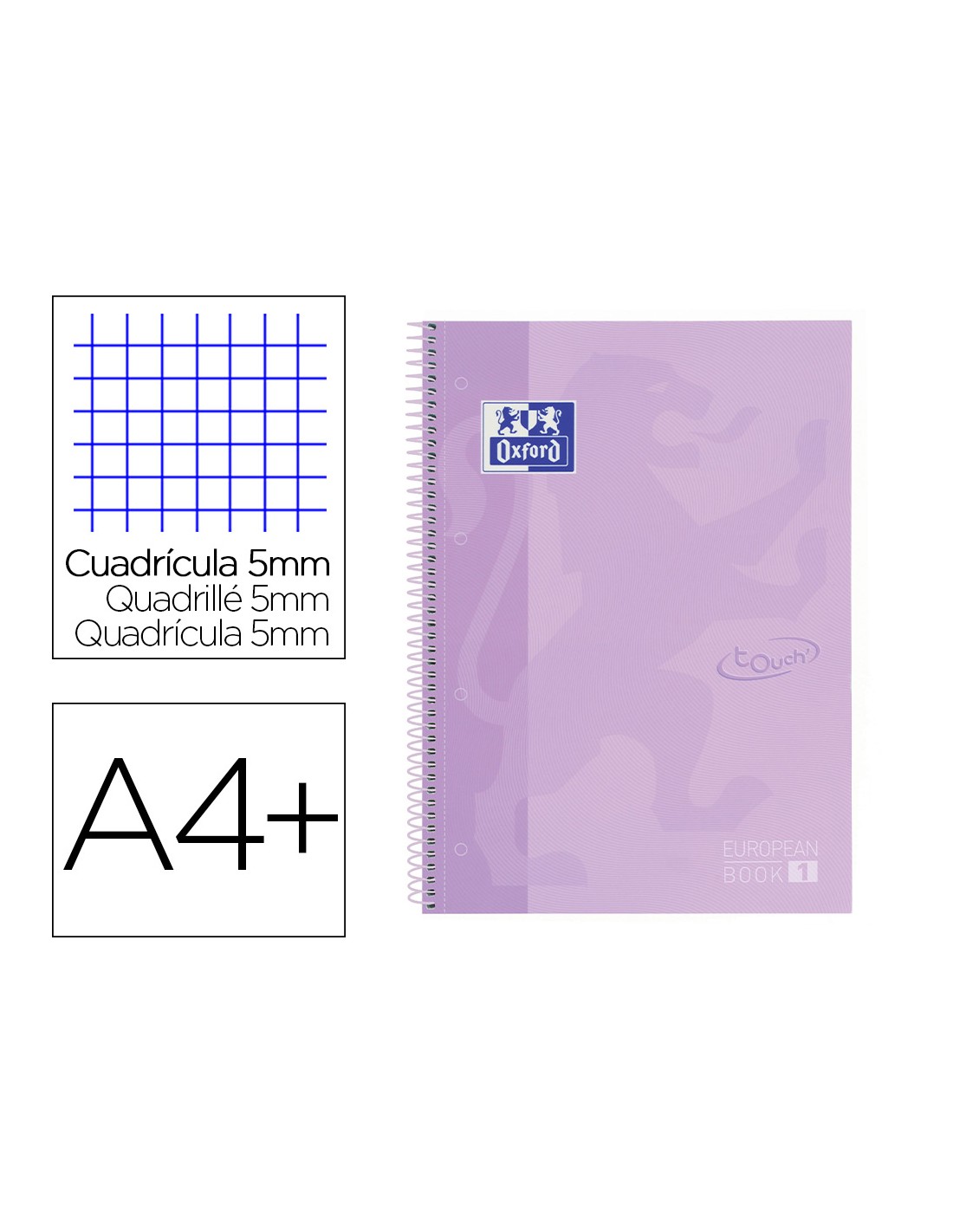 Cuaderno espiral oxford ebook 1 school touch te din a4+ 80 hojas cuadro 5 mm con margen malva pastel