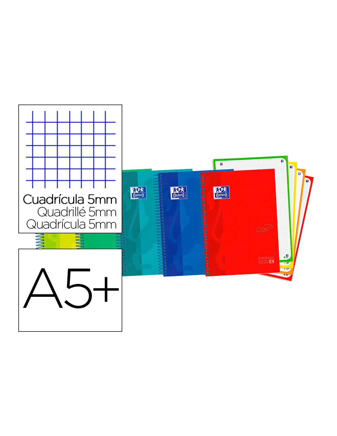 Cuaderno espiral oxford ebook 4 tapa extradura din a5+ 120 h microperforadas cuadro 5 mm colores vivos surtidos