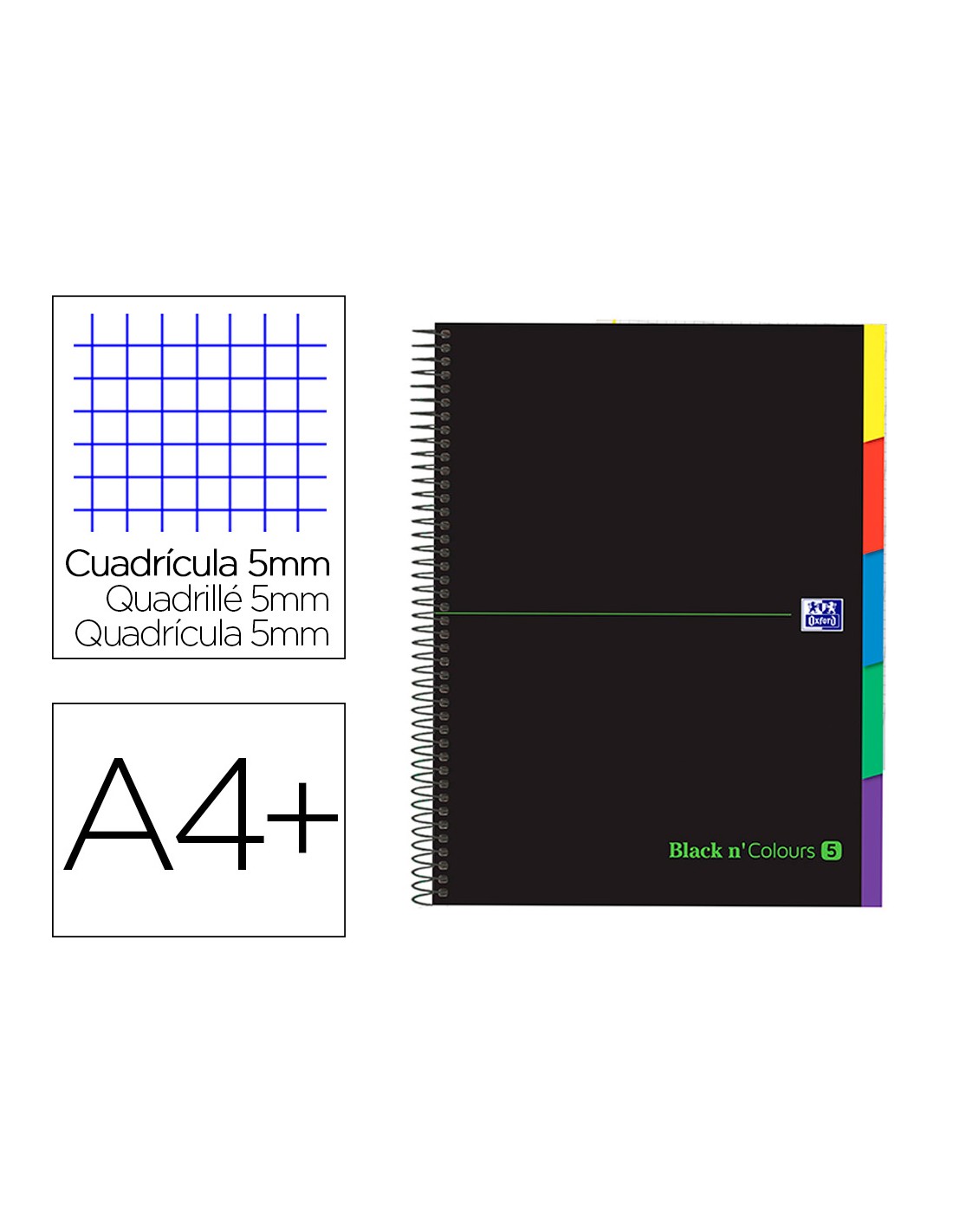 Cuaderno espiral oxford ebook 5 tapa extradura din a4+ 100 h con separadores cuadricula 5 mm black n colors verde