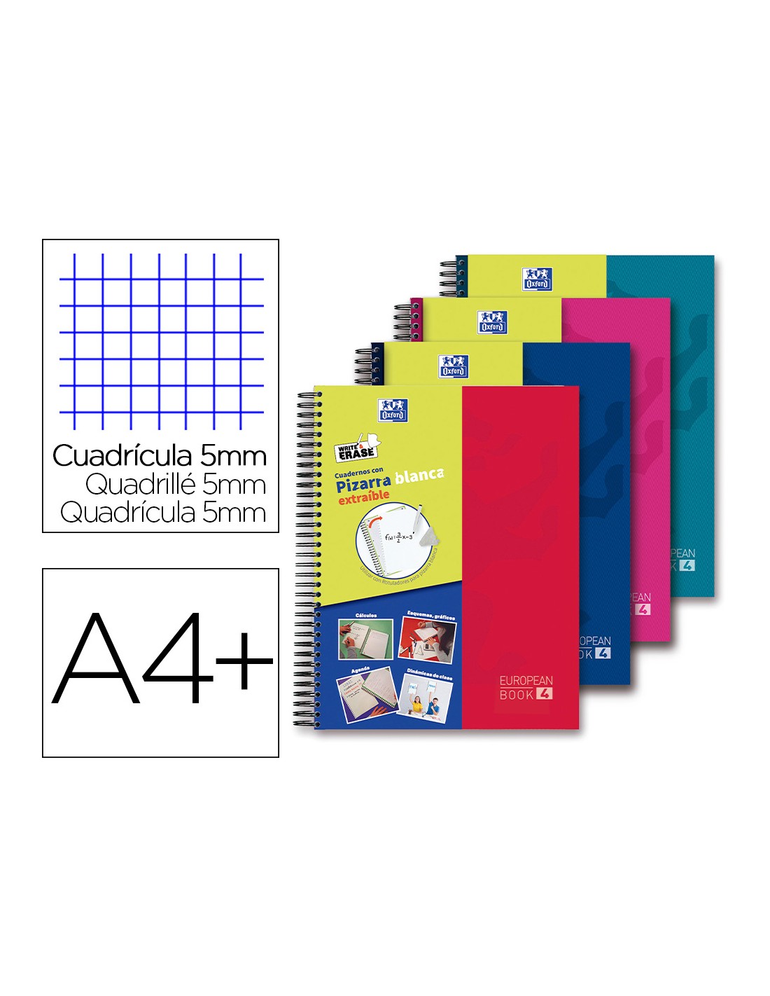 Cuaderno espiral oxford europeanbook 5 write&erase school classic din a4+ 120 hojas cuadro 5 mm con margen
