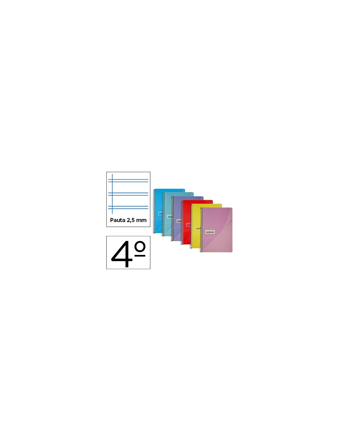 Cuaderno espiral papercop cuarto tapa plastico 80h 90 gr pauta 2,5 mm con margen colores surtidos