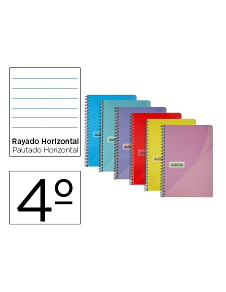 Cuaderno espiral papercop cuarto tapa plastico 80h 90 gr rayado horizontal con margen colores surtidos