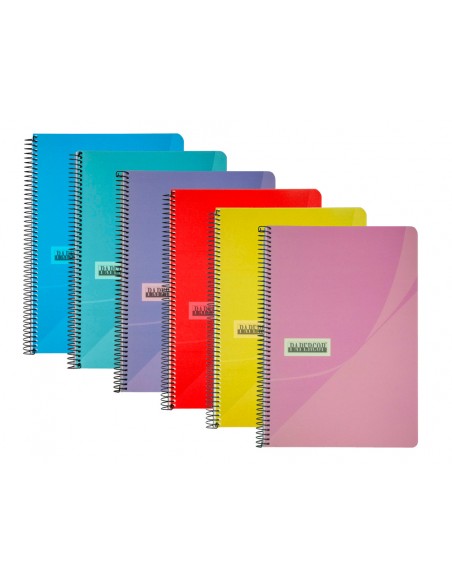 Cuaderno de tapa dura. 80 hojas. Papel en 70 g/m². Con margen. Formato folio. Espiral nylonizada negra. Coil-lock. Colores surtidos.