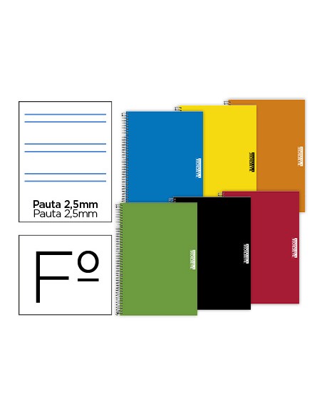 Cuaderno espiral papercop folio tapa extradura 80 hojas pauta 5 2,5 mm con margen 70 gr colores surtidos
