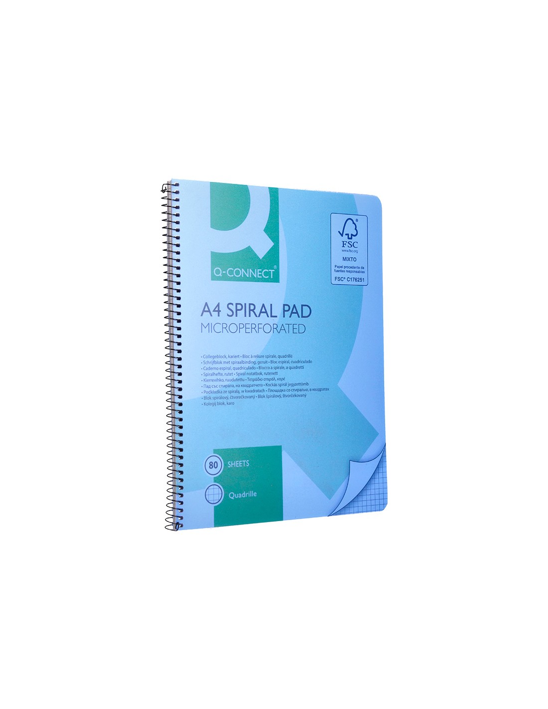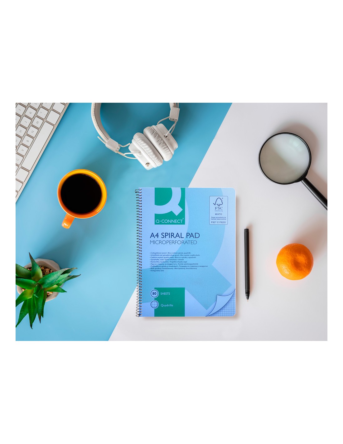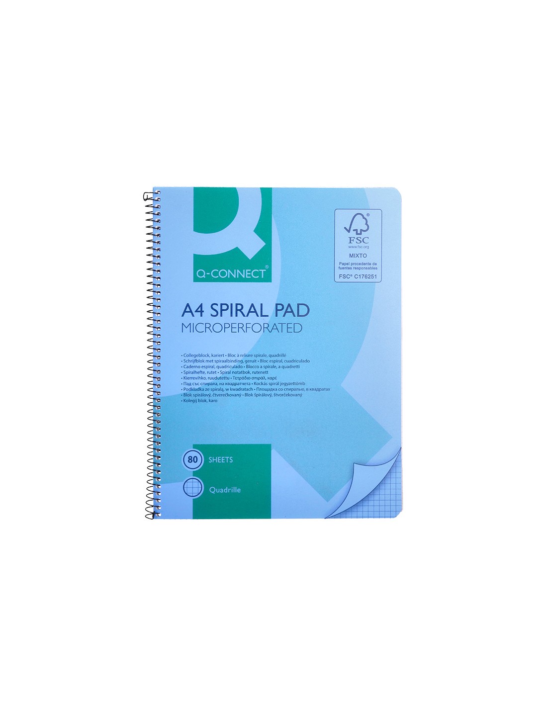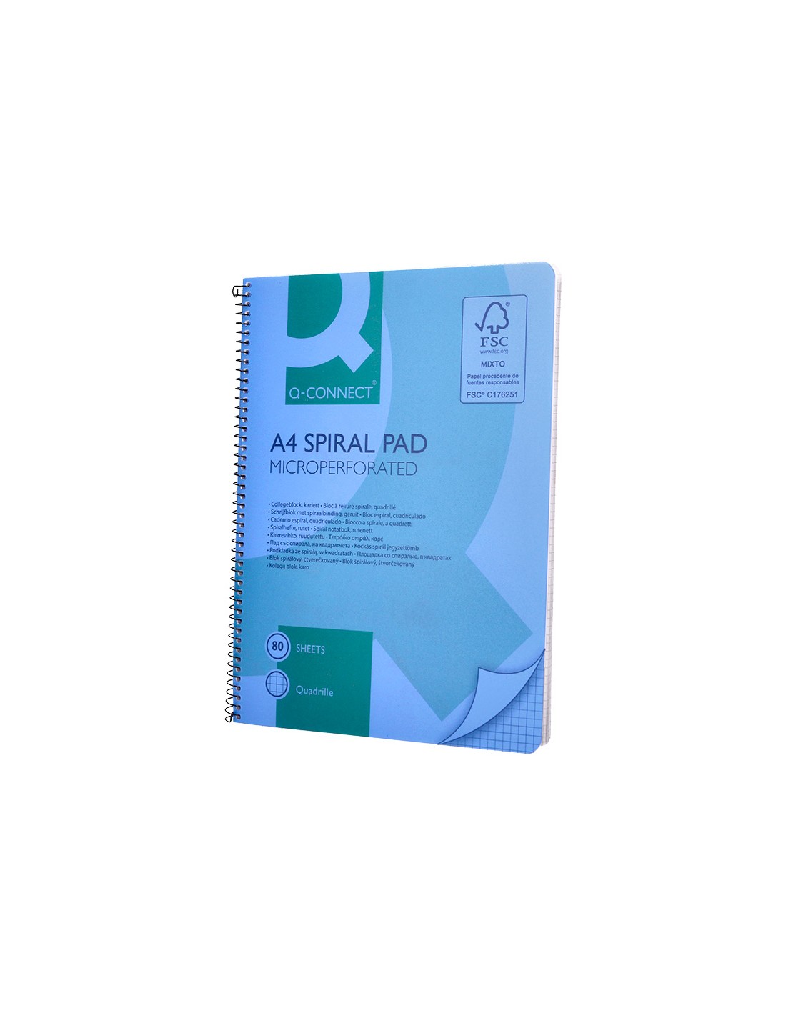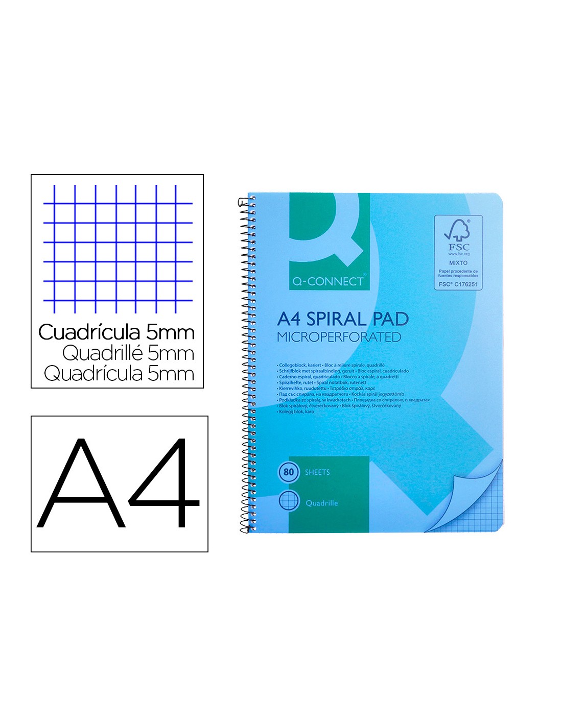 Cuaderno espiral q-connect a4 micro tapa plastico 80h 70g cuadro 5mm sin bandas 4 taladros azul fsc