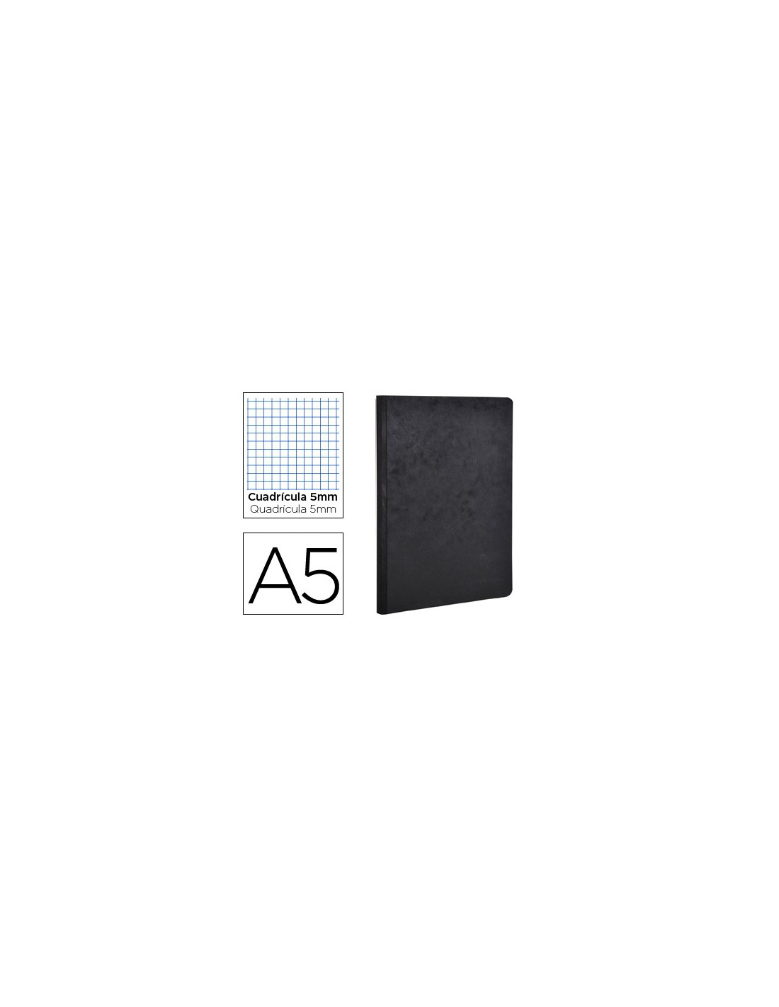 Libreta age-bag tapa cartulina lomo cosido cuadro 5 mm 96 hojas color negro 148x210 mm