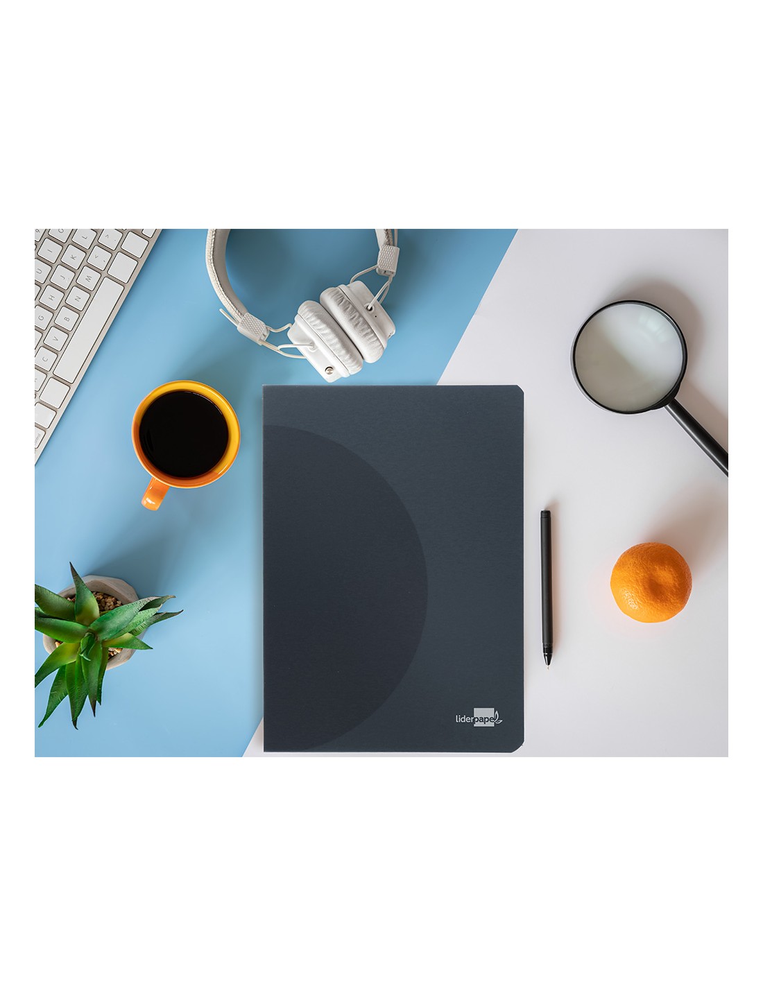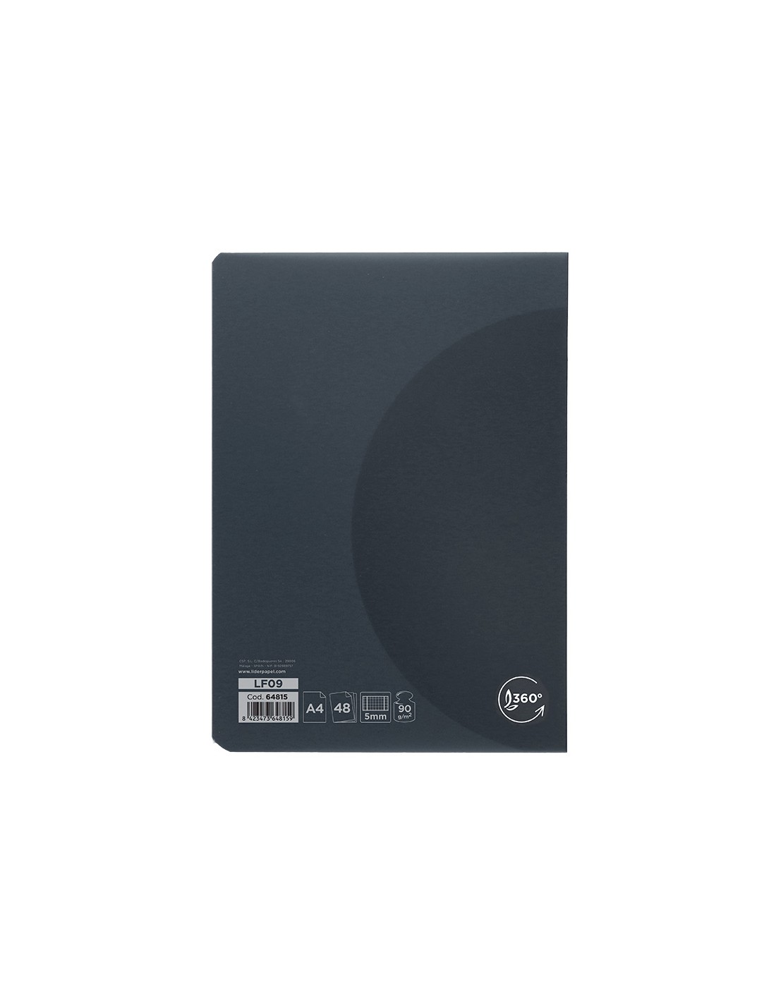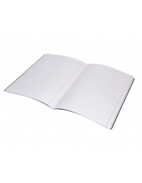 Libreta con tapa de plástico flexible y resistente. Se puede abrir completamente para una mayor comodidad. 48 hojas. Papel de 90 g/m². Cuadrícula de5 mm. Doble margen. Color negro