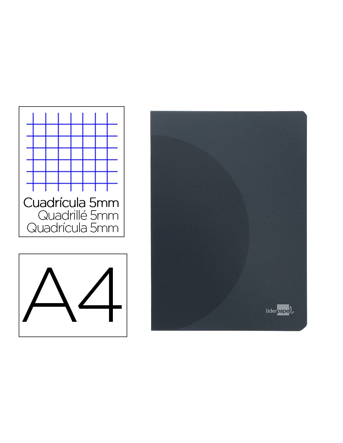 LIDERPAPELLibreta liderpapel 360 tapa de plastico a4 48 hojas 90g/m2 5mm con doble margen tapa negra