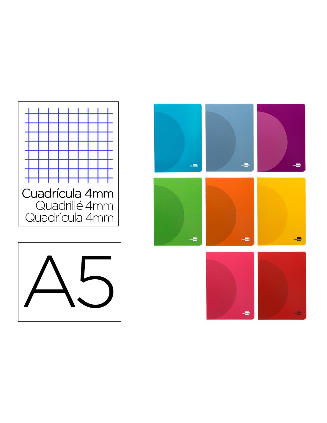 Libreta liderpapel 360 tapa de plastico a5 48 hojas 90g/m2 cuadro 4mm con margen colores surtidos