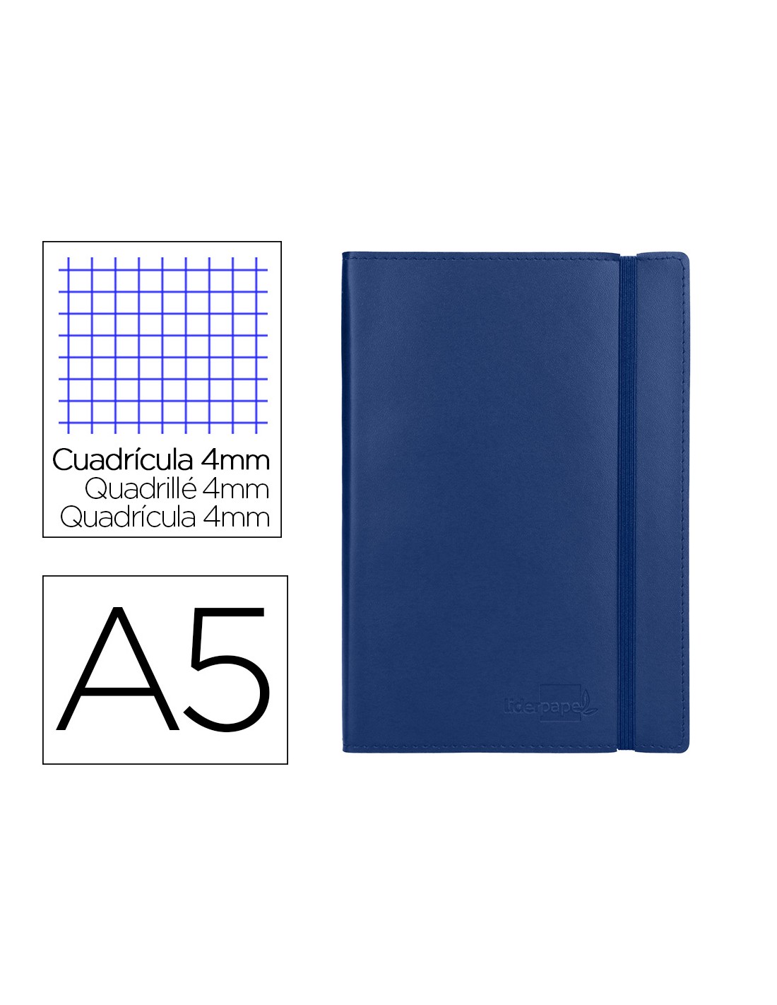 Libreta liderpapel simil piel a5 120 hojas 70g/m2 cuadro 4mm sin margen azul