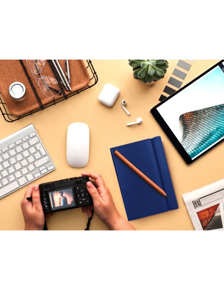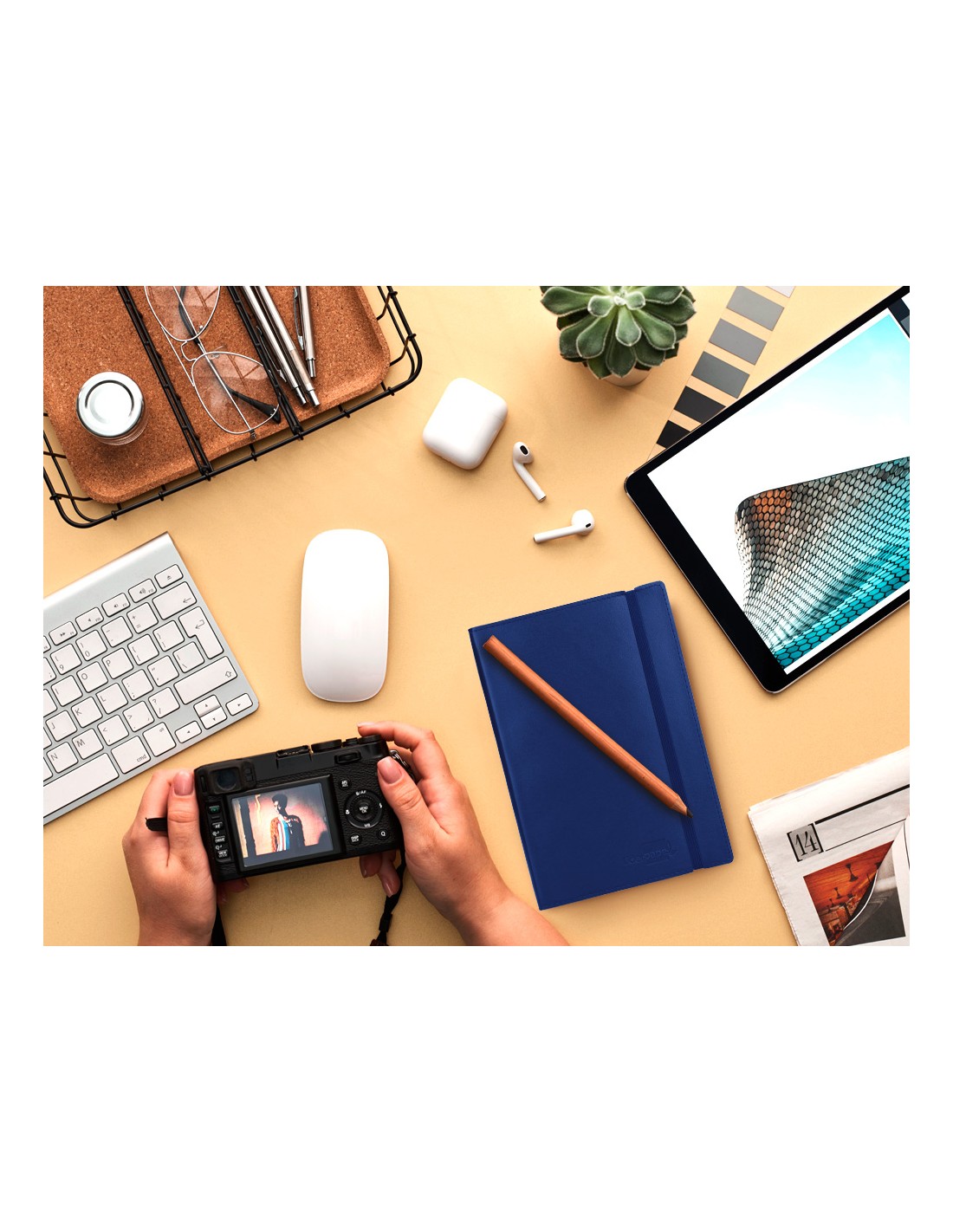 Cuaderno encolado con cierre de gomillas. Perfecta para llevar encima, tomar apuntes, hacer bocetos, plasmar cualquier idea. Tapa símil-piel flexible de 1,75 mm de espesor. 120 hojas. 70 g/m². Sin margen.