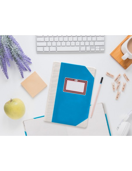 Libro cosido manualmente. Tapa forrada con cartón 2 mm. Interior en papel Offset 100 gr/m². Ideal para registros, memos, notas diversas, dibujo y sketching. Din A4+. Impresión liso. Color azul
