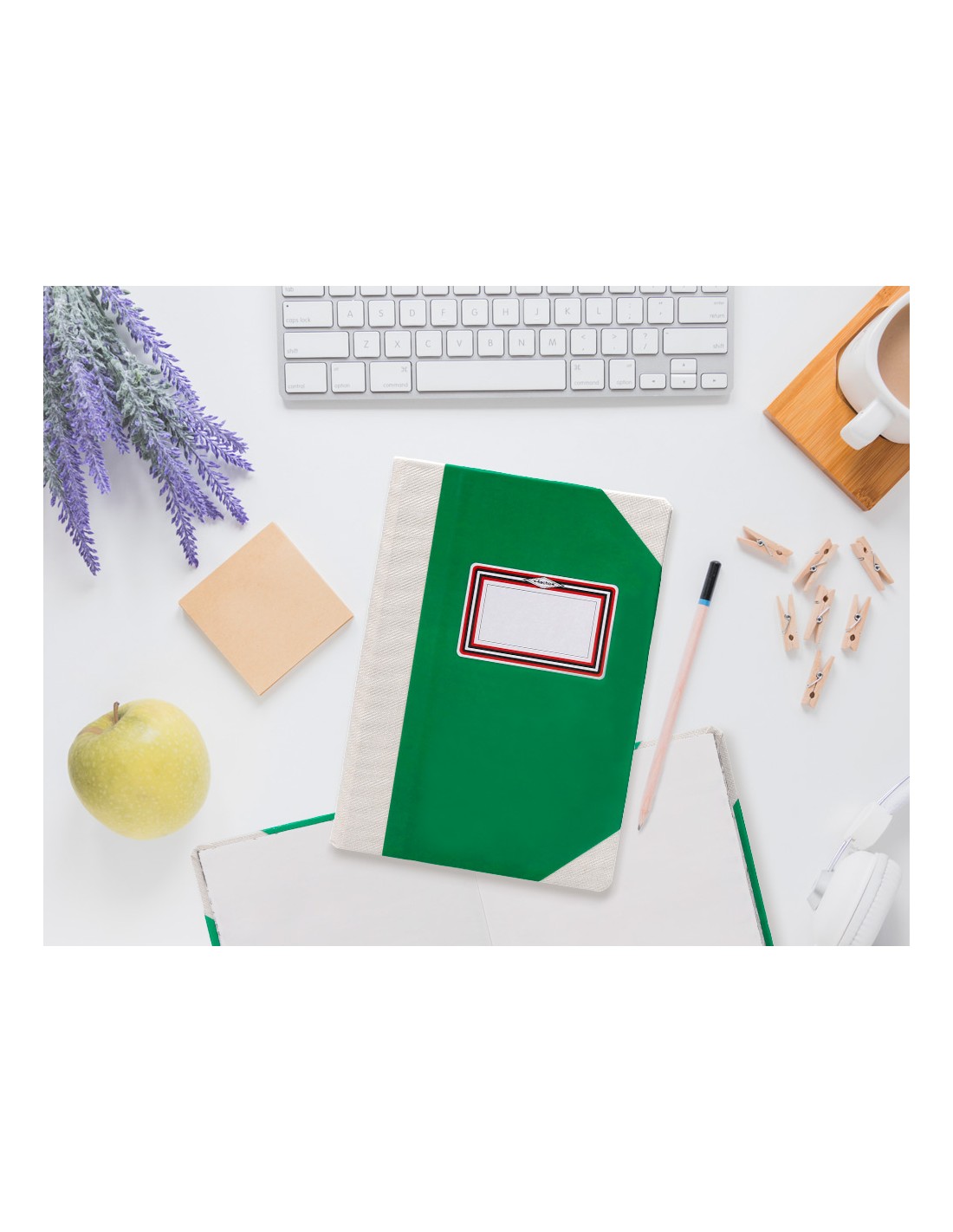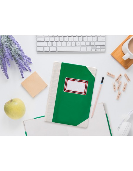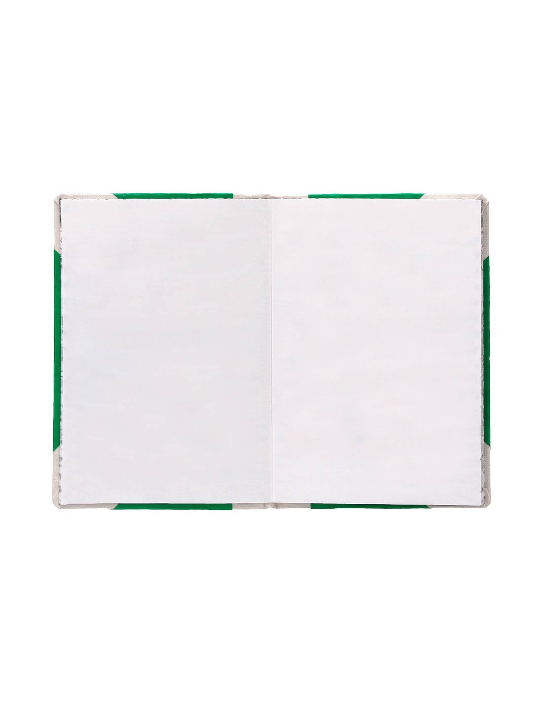 Libro cosido manualmente. Tapa forrada con cartón 2 mm. Interior en papel Offset 100 gr/m². Ideal para registros, memos, notas diversas, dibujo y sketching. Din A4+. Impresión liso. Color verde.