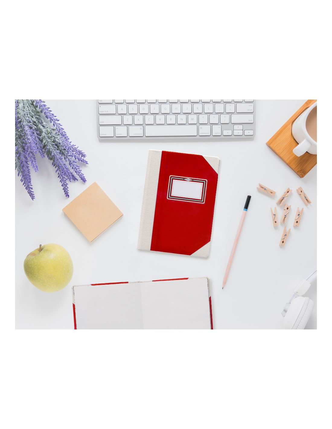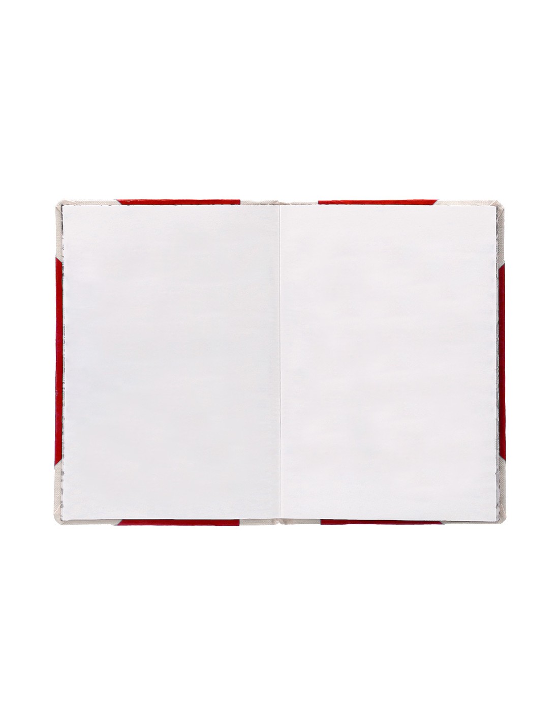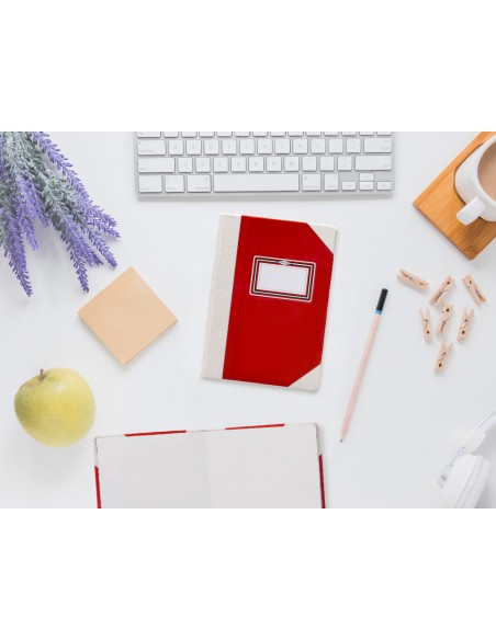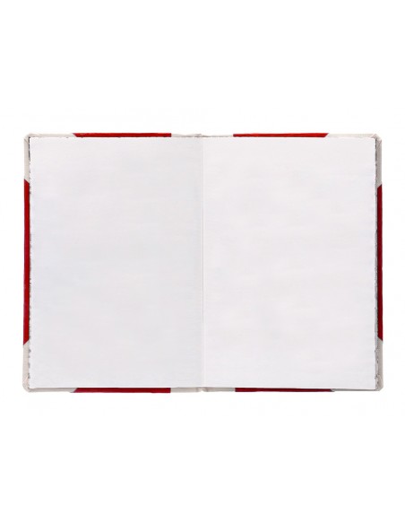 Libro cosido manualmente. Tapa forrada con cartón 2 mm. Interior en papel Offset 100 gr/m². Ideal para registros, memos, notas diversas, dibujo y sketching. Din A5+. Impresión liso. Color rojo.
