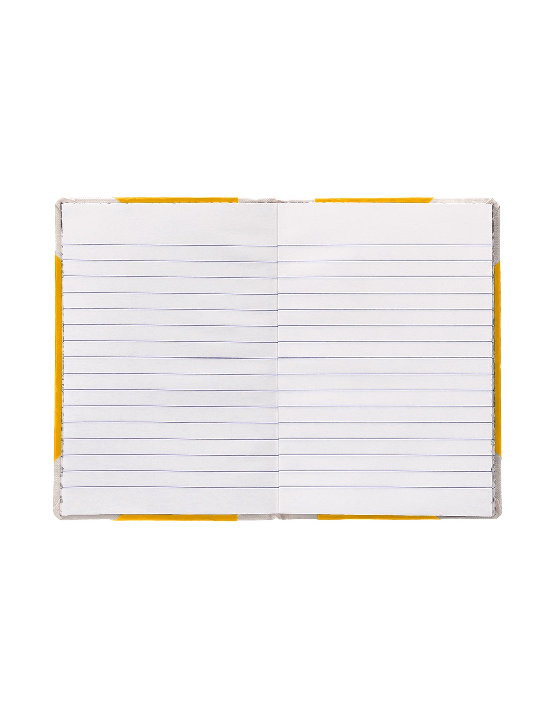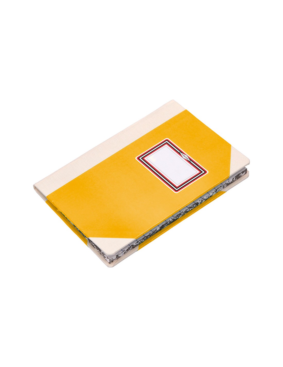 Libro cosido manualmente. Tapa forrada con cartón 2 mm. Interior en papel Offset 100 gr/m². Ideal para registros, memos, notas diversas, dibujo y sketching. Din A6+. Impresión liso. Color amarillo.