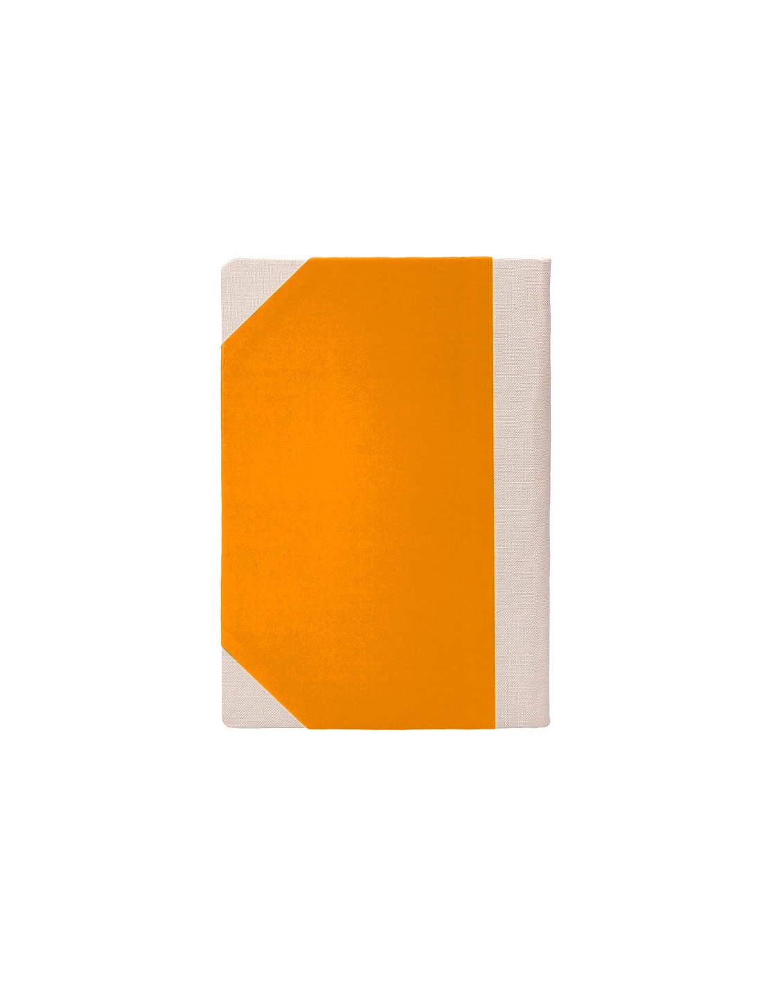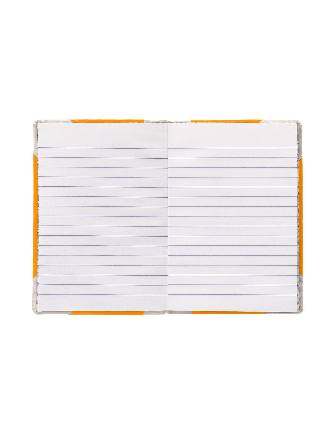 Libro cosido manualmente. Tapa forrada con cartón 2 mm. Interior en papel Offset 100 gr/m². Ideal para registros, memos, notas diversas, dibujo y sketching. Din A6+. Impresión rayado horizontal. Color naranja.