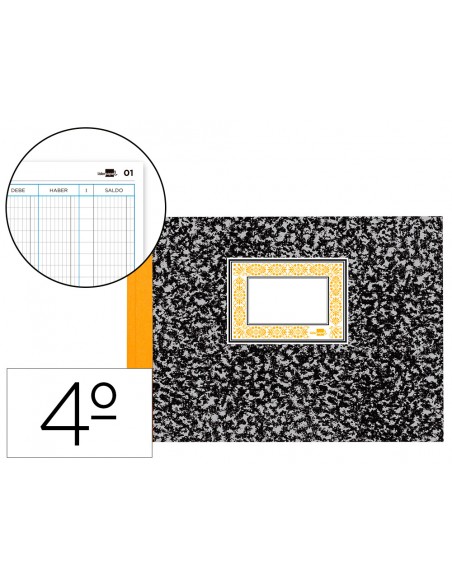 Libro liderpapel cuarto apaisado cartone 100 hojas cuentas corrientes debe haber y saldo