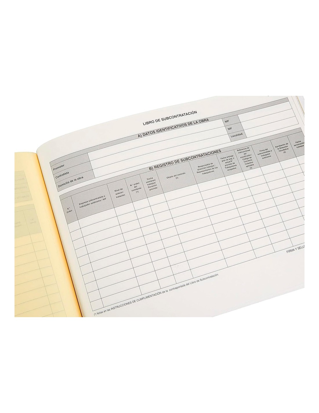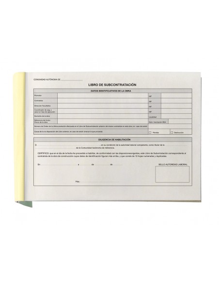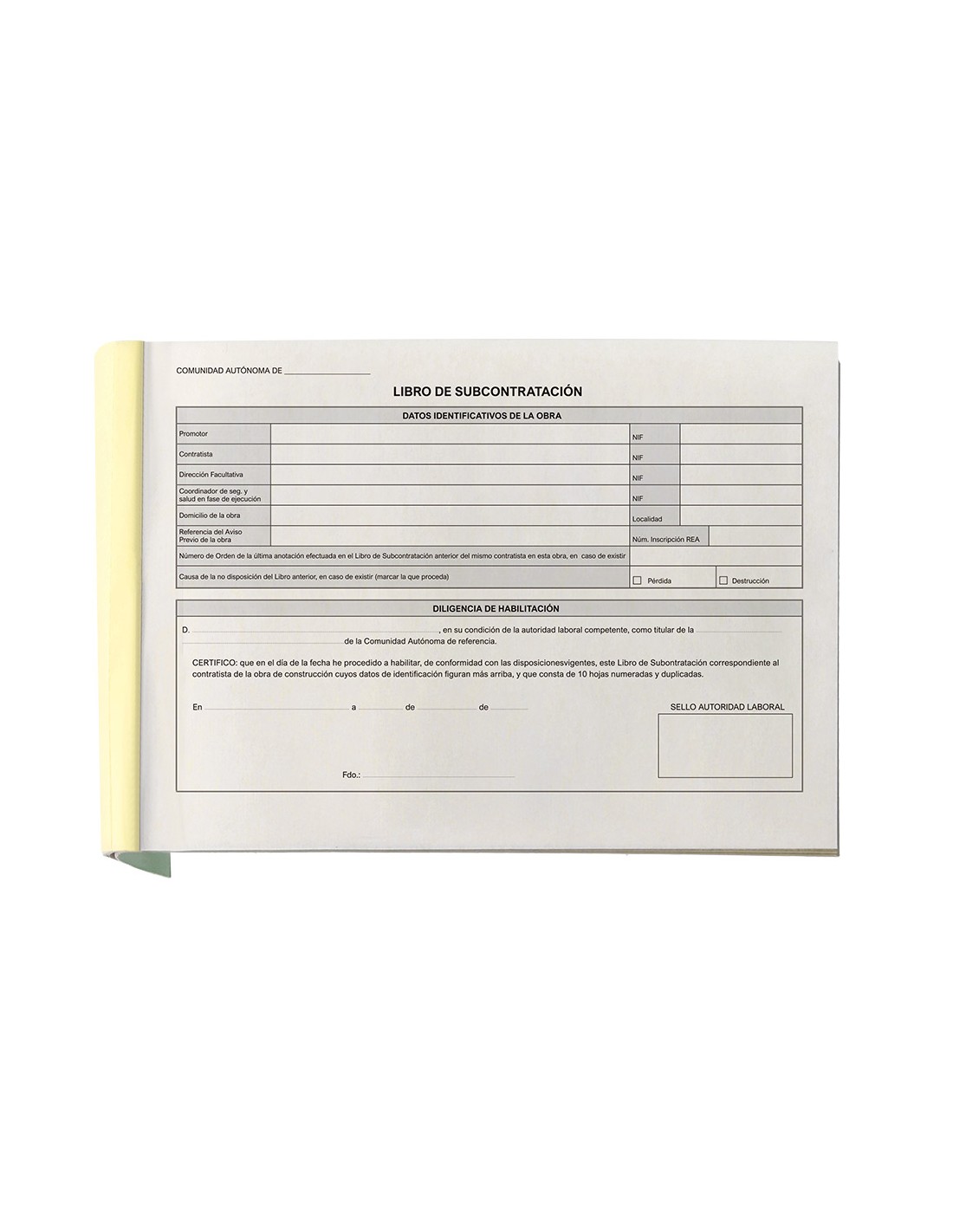Libro liderpapel subcontratacion folio juego de 10 hojas autocopiativas