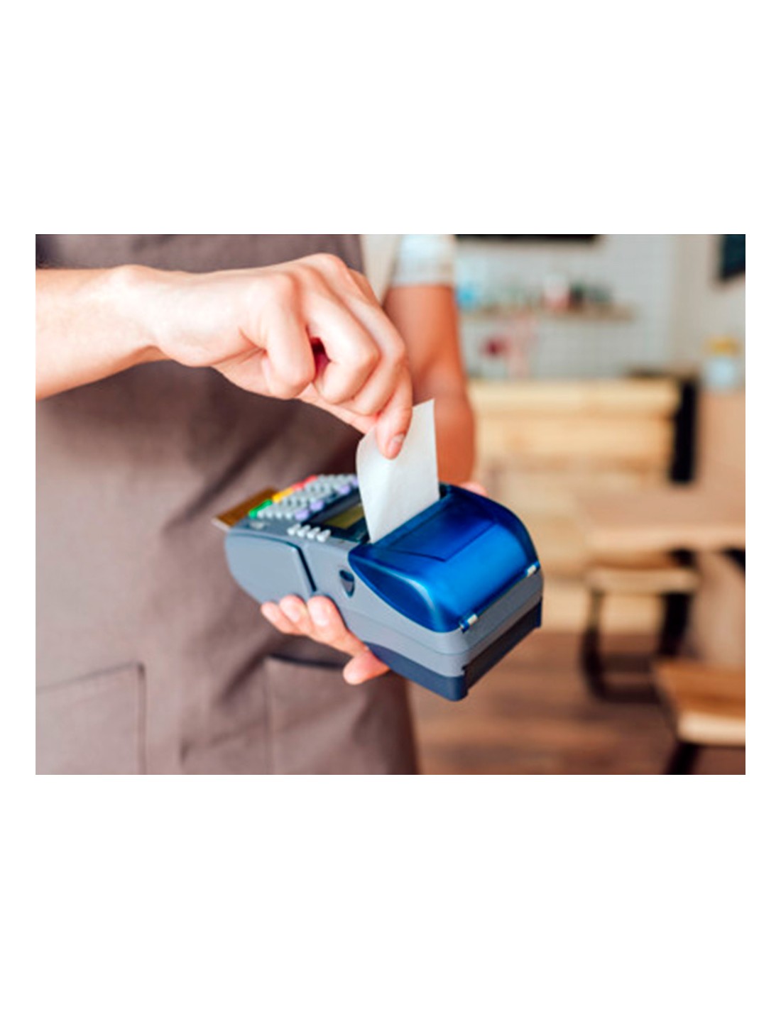 Rollo de sumadora Térmico. 57 mm ancho y diametro 35 mm (18 metros). Certificado FSC. Economico. Para TPV (Terminales de pago Visa). SIN BPA.