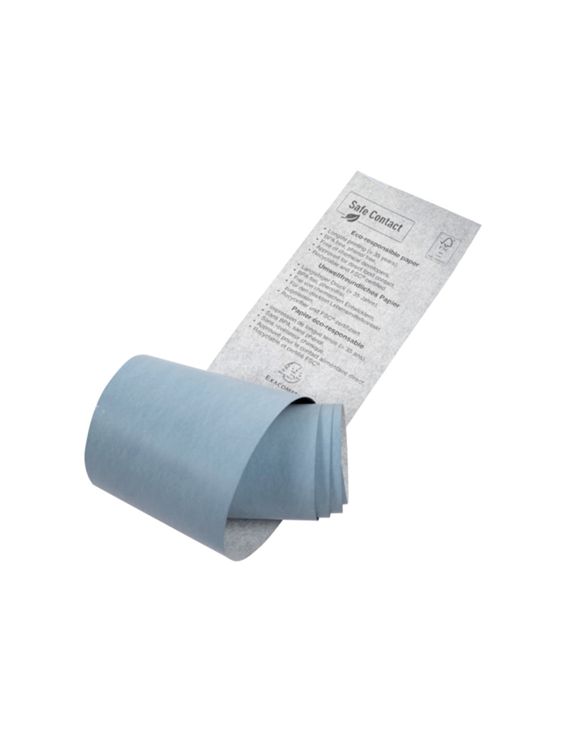 Rollo de sumadora Térmico Safe Contact. 57 mm ancho y diametro 40 mm (18 metros). Para TPV (Tarjetas de Pago Visa). Las bobinas Safe contact están fabricadas con un papel ligeramente azul grisáceo que no teme el calor, laluz o la humedad, lo que garantiza una impresión duradera (mínimo 35 años ). Fabricadas sin revelados químico, sin BPA y sin Fenol, las bobinas SafeContact son seguras para la salud e incluso están aprobadas para el conta cto con alimentos. Este papel eco-responsable es reciclable con residuos de papel- Vida muy larga, certificado FSC con impresión en la parte posterior.